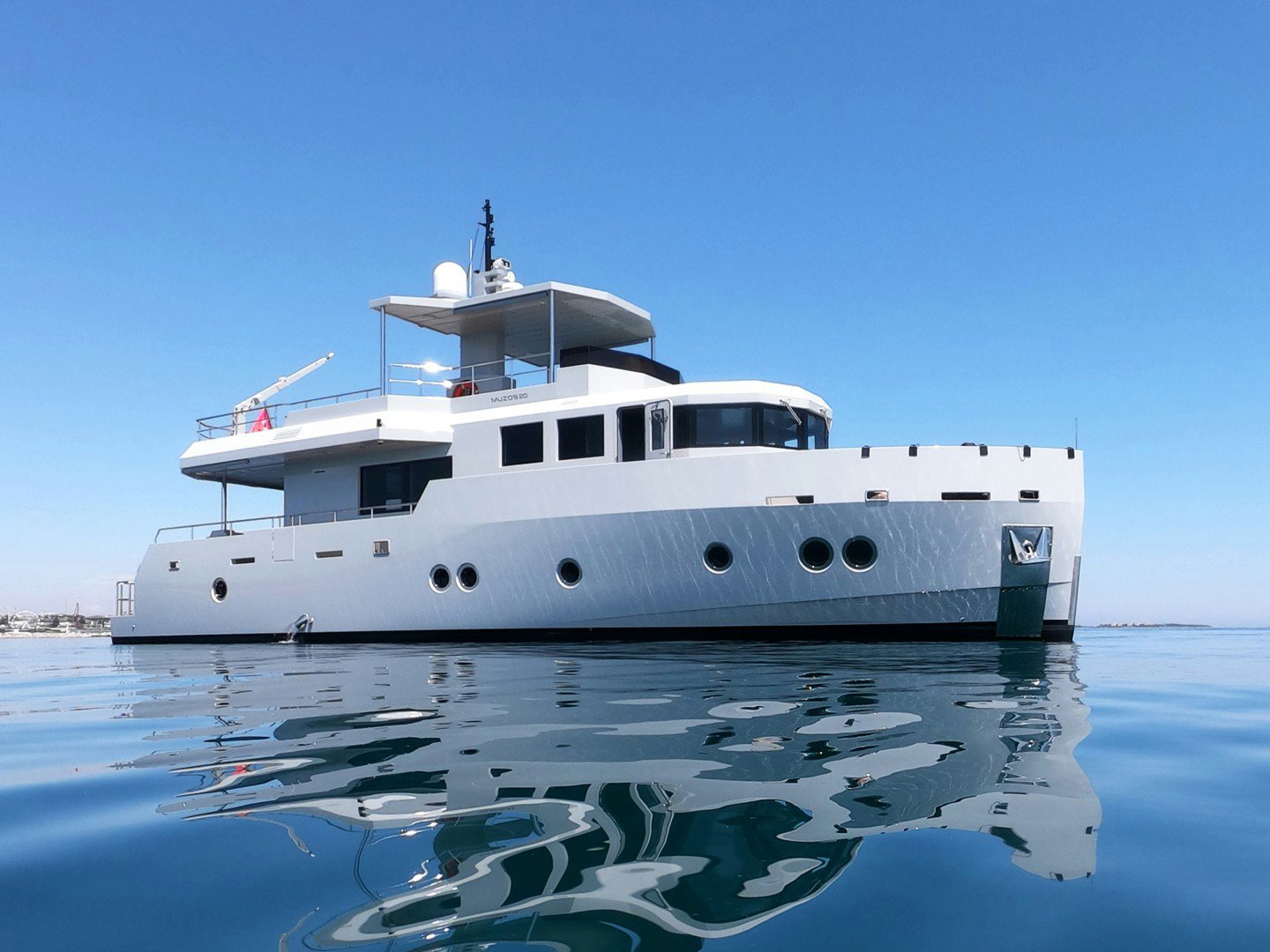 Launched in 2020 by Tansu Yachts and Med Shipyard with design by the renowned Riza Tanzu, MUZO’S 20 has the brand’s distinguished exterior styling that turns heads. Strong. angular lines create a modern, military-styled appearance. The yacht has a wooden epoxy laminated fast-displacement hull that ensures comfort at sea with excellent stabilization. The yacht boasts long-range capabilities with a 2,500 nautical-mile range at an economical speed, making her perfect for those who want to explore exciting destinations. MUZO’S 20 has a cruising speed of 11 knots and a top speed of 13.5 knots.