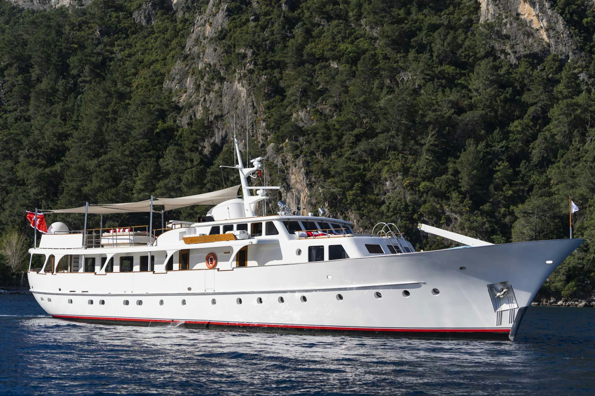 Delivered by renowned and respected yacht builder Feadship, ALHAMBRA was originally commissioned in 1970 for an American business mogul as a classic “Gentleman’s Yacht.” She has seen many upgrades over the years, the most notable being a technical refit in 2008 and an extensive three-year refurbishment plan from 2019-2022 appointed by her current owner. Noteworthy updates include a full paint job, new teak on the sundeck, new paneling, carpets and rebuilt bathrooms on her interior, and various exterior improvements. ALHAMBRA is ideal for an owner seeking a seemingly ageless yacht that effortlessly combines traditional elements with modern features and amenities.