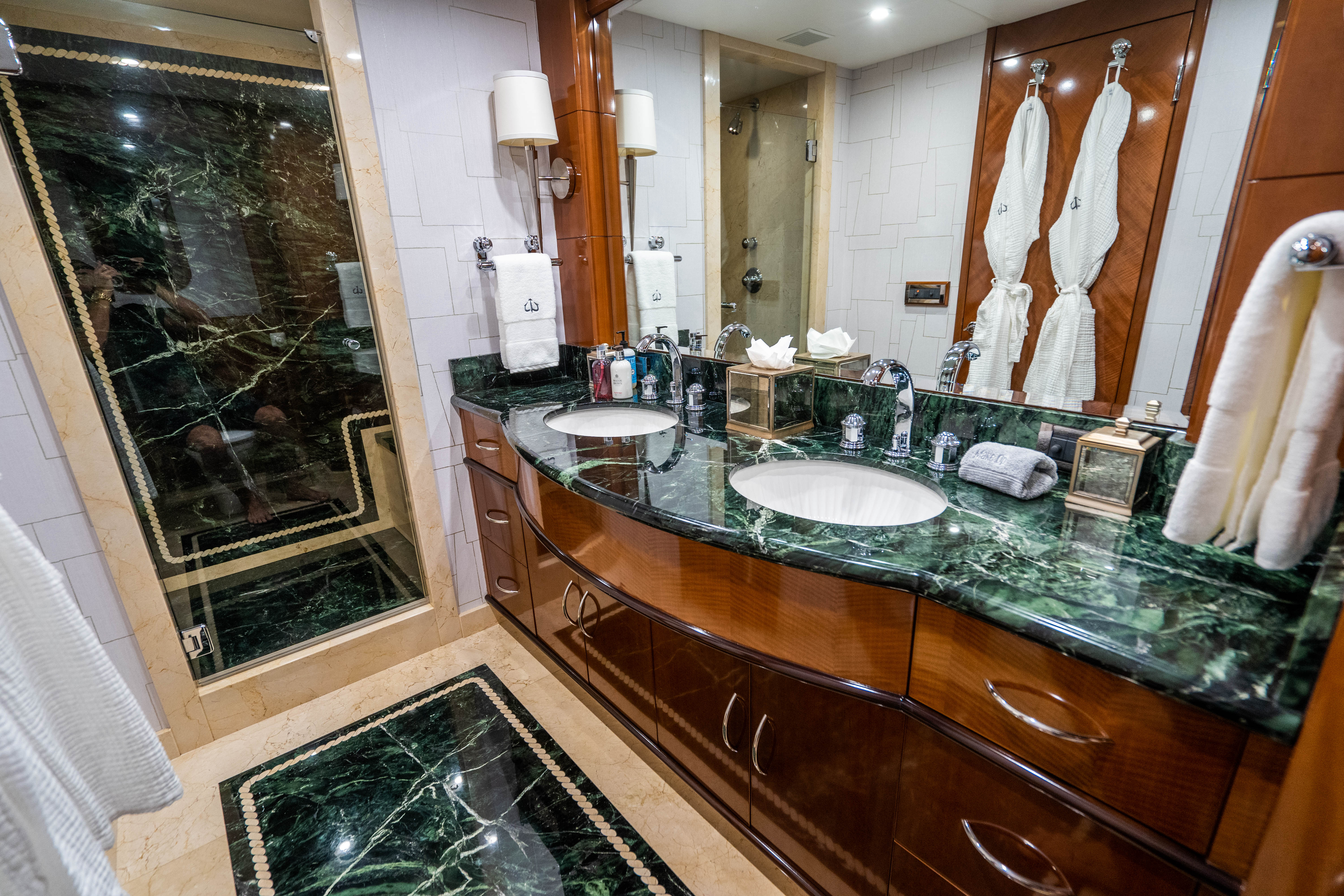 Launched in 2004, the Australian-built ALL IN is a 145’ (44.2m) NQEA Yachts superyacht. The $2.5 million refit, carried out in 2022, included technical upgrades as well as a full interior overhaul, allowing ALL IN to offer improved comfort, better performance, and state-of-the-art amenities for all her guests. One such notable improvement was the conversion of her onboard gym into a fifth stateroom, allowing the luxury yacht to accommodate up to 10 guests. The addition added another level of luxury to the yacht’s accommodations.