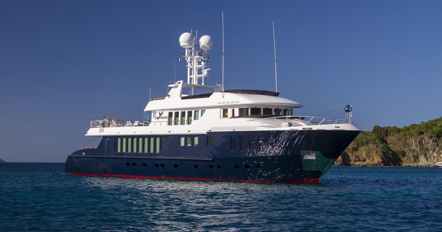 Launched in 2002 and refitted in 2013, CAPRICORN is in exceptional condition. She features Zero Speed stabilizers and a remarkably spacious interior with a beam of 28 feet, all adding to her exceptional comfort level. Her shallow draft of six feet means she is able to cruise shallow waters, offering her guests access to almost every anchorage or secret cove.