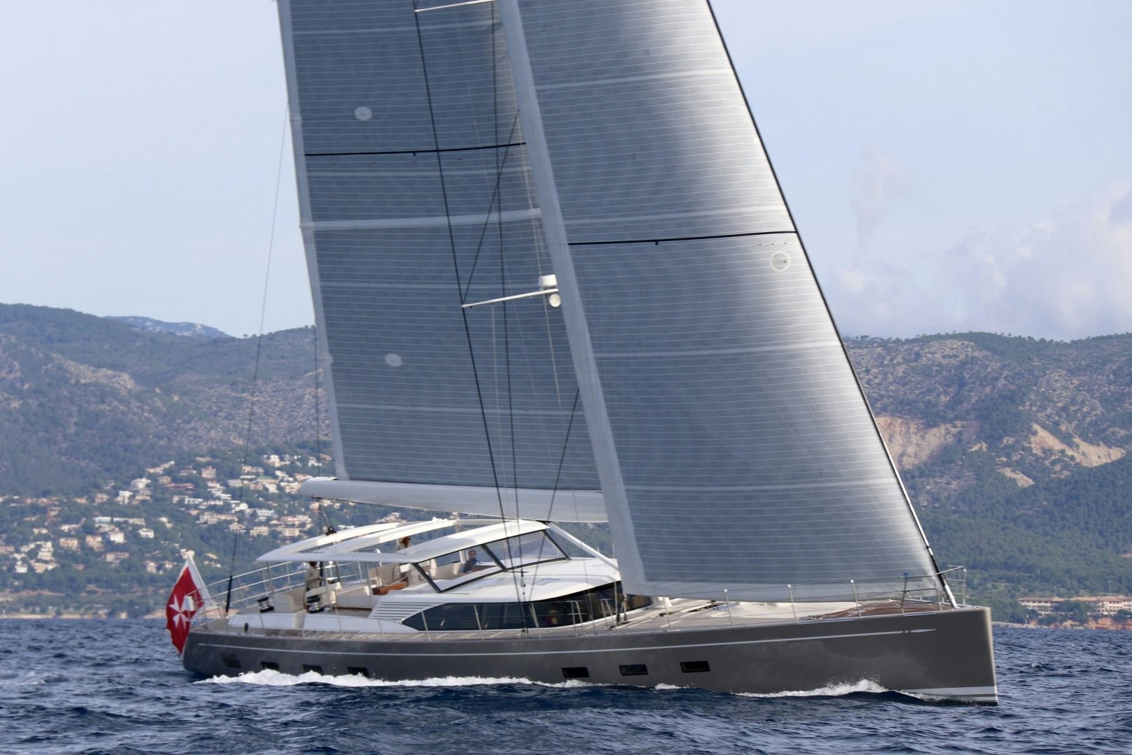 CHILD OF LIR boasts inspiring performance that will impress even the most experienced sailors. While sailing the yachts maneuvers are facilitated by a self-tacking jib and complete push-button sail and rigging controls, which allow her to be easily sailed by a small crew that ranges from two to four crewmembers.