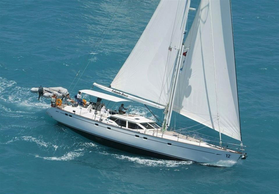 Luxury yacht COLUMBO BREEZE accommodates up to six guests and two crewmembers in four staterooms. This Oyster Marine yacht has an impressive full-beam master stateroom with an en-suite bath as well as a double-bed stateroom and two bunk staterooms.