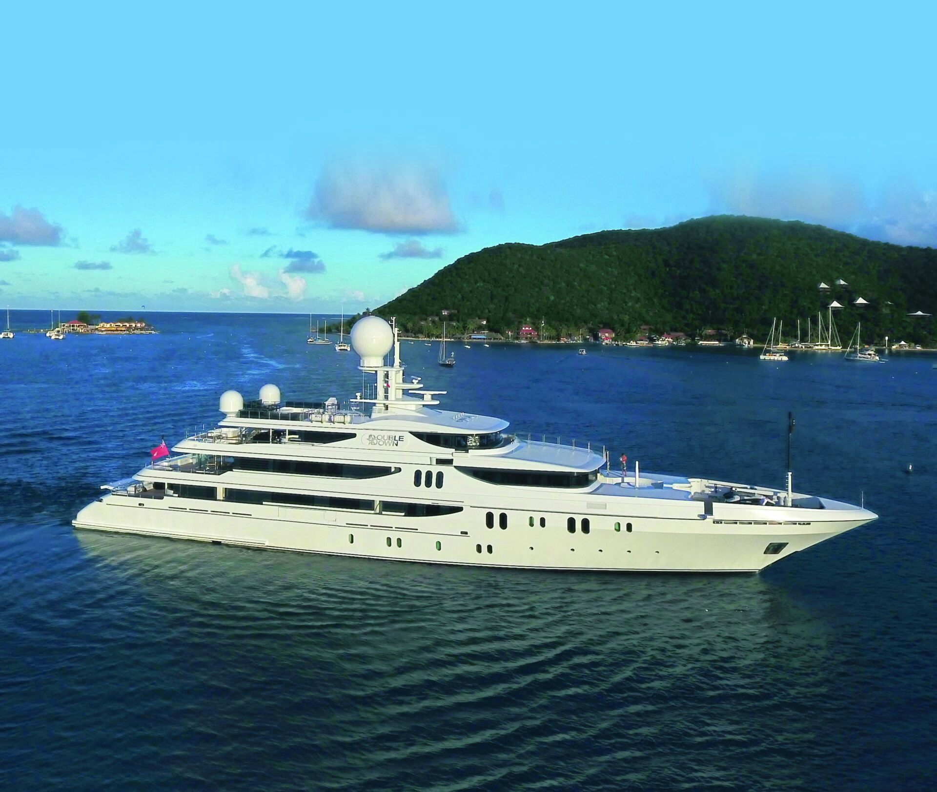 The luxury superyacht showcases a resplendent interior designed by Della Role Design. Her spacious interior includes many impressive amenities, including a cinema, a full gymnasium, a four-deck elevator and a beautiful grand piano. DOUBLE DOWN can accommodate 20 guests in nine sumptuous staterooms, including a master suite, five VIPs and three guest staterooms, all of which feature timeless styling and are outfitted to the highest standard.