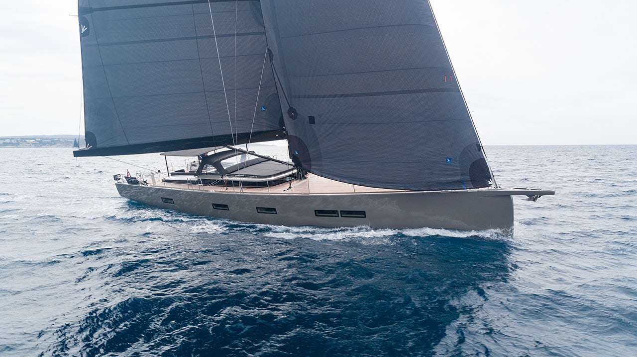 The exterior styling of CIN CIN is contemporary, with a large, clean foredeck that boasts a self-tacking jib track for effortless short-handed sailing. The hydraulically opening aft deck provides access to an enormous lazarette and a Torqeedo electric-powered AB tender. The cockpit features two lounging sunpads, while the large guest cockpit is shaded by a carbon-fiber Bimini, offering a perfect setting for relaxation.
