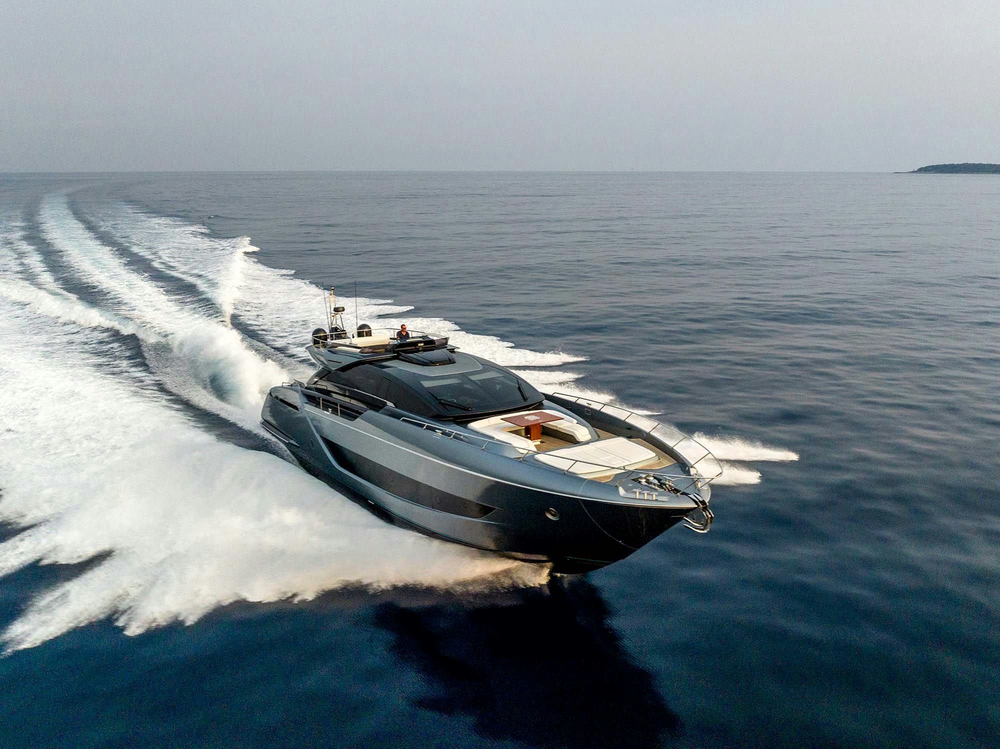 GECUA, the Riva 88 Folgore, showcases the finest in design and luxury within the Sportfly series from the Italian shipyard. Unveiled in 2021, GECUA seamlessly blends revolutionary, edgy styling with a clever fusion of carbon, decorative steel, and classic Mahogany, setting her apart as a unique and distinguished yacht in her class.
