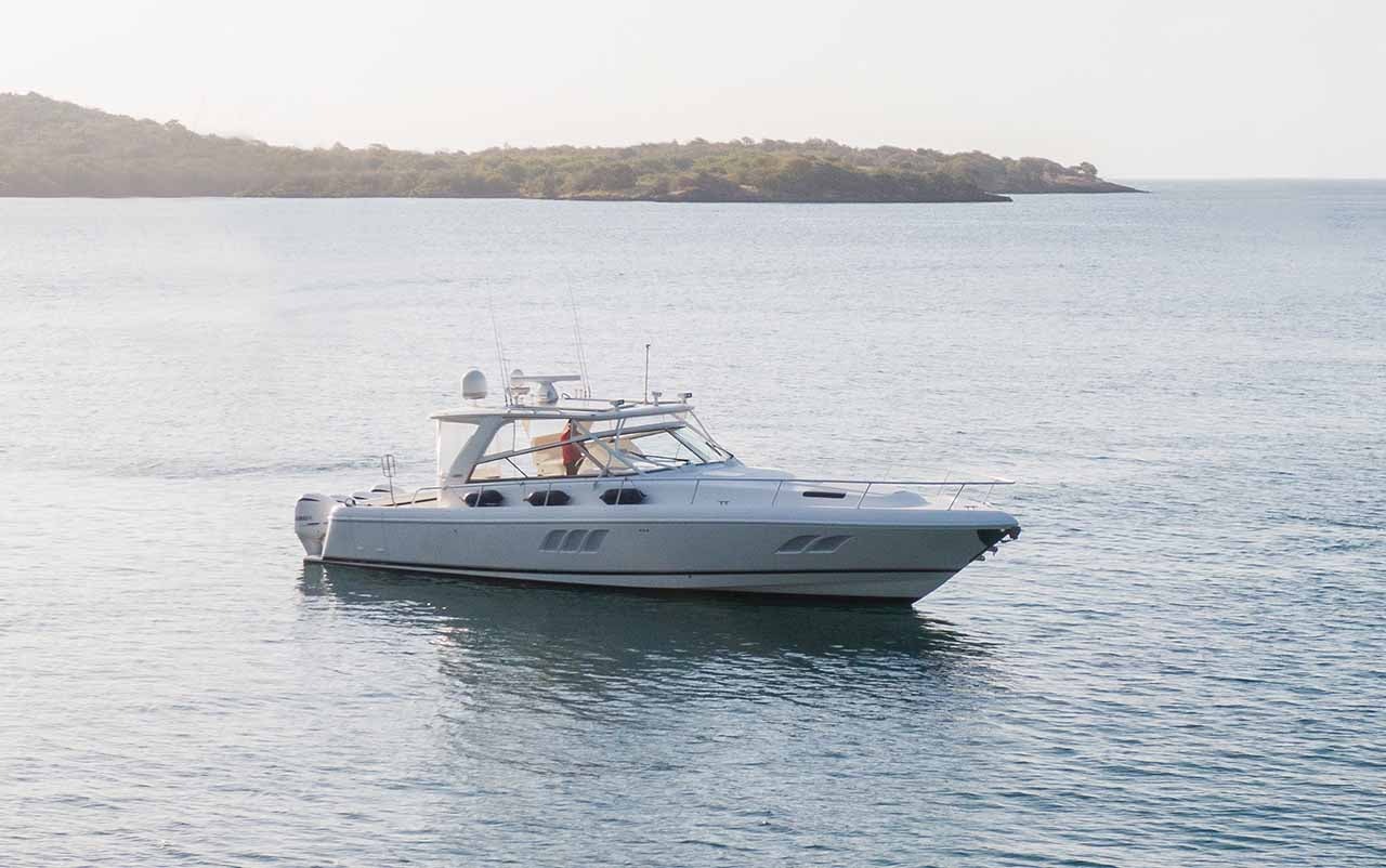 FORGET ABOUT IT has been exceptionally maintained. She has undergone several recent major upgrades, including a comprehensive 100-hour service, a new generator and A/C compressor, flywheel replacement, a Simrad autopilot, new tilt motors and props, and a tow package. As a result, she’s in exceptional condition and turnkey-ready.