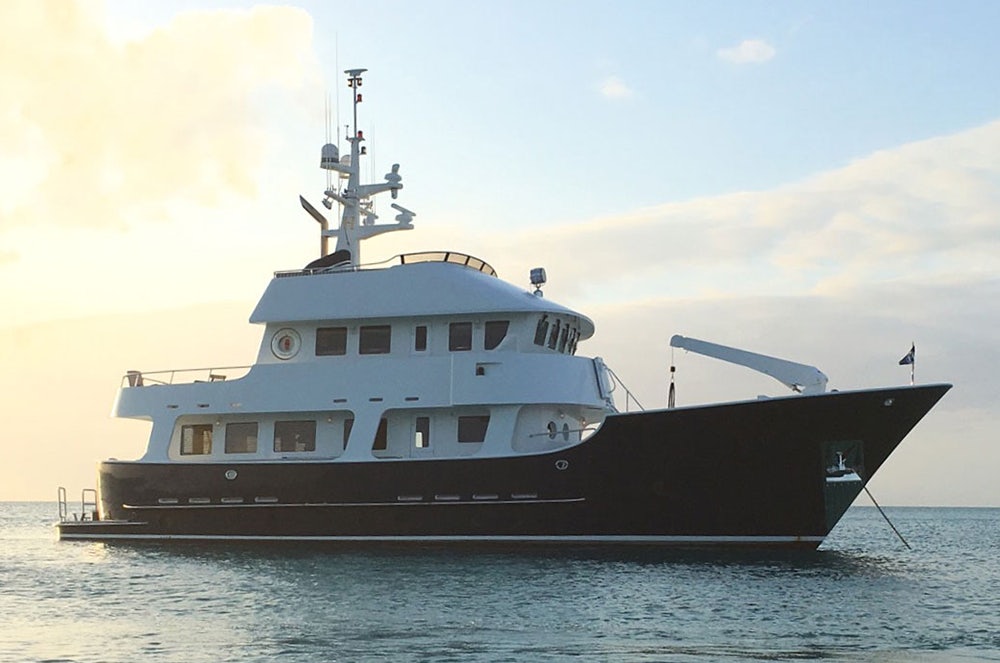 HERCULES is an impressive expedition yacht designed and built in 2006 to satisfy an adventurous owner. She received a major refit in 2016 with 100% U.S. craftsmanship. She features a spacious wrap-around Portuguese flybridge, pilot deck, main deck and below-deck accommodations. Her clever design allows plenty of natural light through her many windows and with a warm color palette throughout, she is a comfortable, cozy choice for those seeking open-water exploration.
