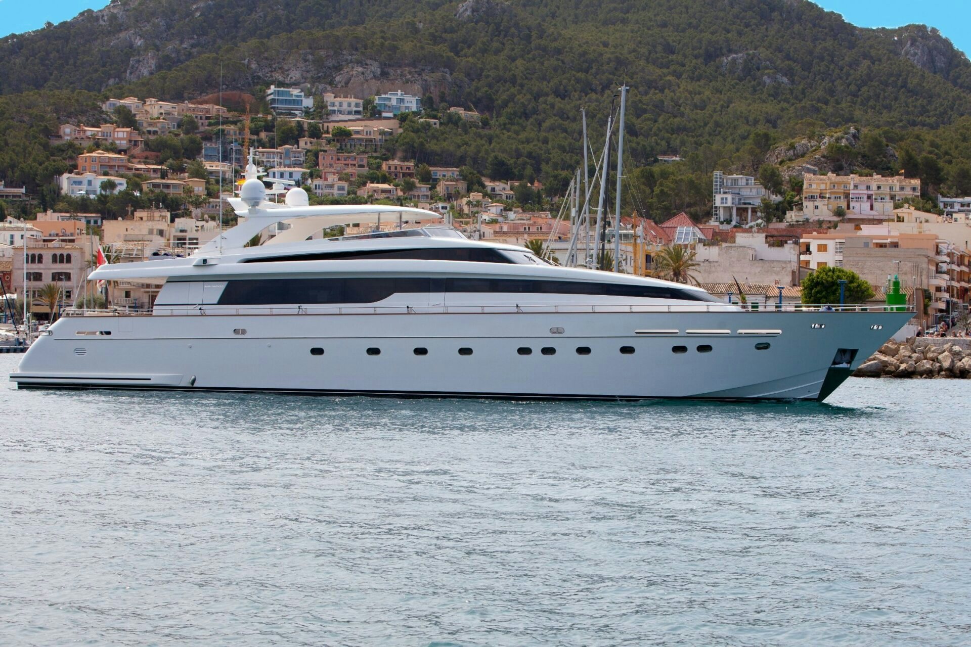 Built in 2008, this Gentlemen’s yacht is beautifully executed with mahogany interiors in a high gloss varnish. She offers eight berths in four cabins. The master cabin is situated on the main deck with a king-size bed, plenty of wardrobe space and an en-suite bathroom with Jacuzzi bath and separate shower cubicle. On the lower deck you will find a VIP cabin with king-size bed and a nice en-suite bathroom with vanity and shower. Two additional guest cabins offer a double-size bed and twin beds, both with en-suite bathroom and shower. All cabins are equipped with sat TV and sound system.