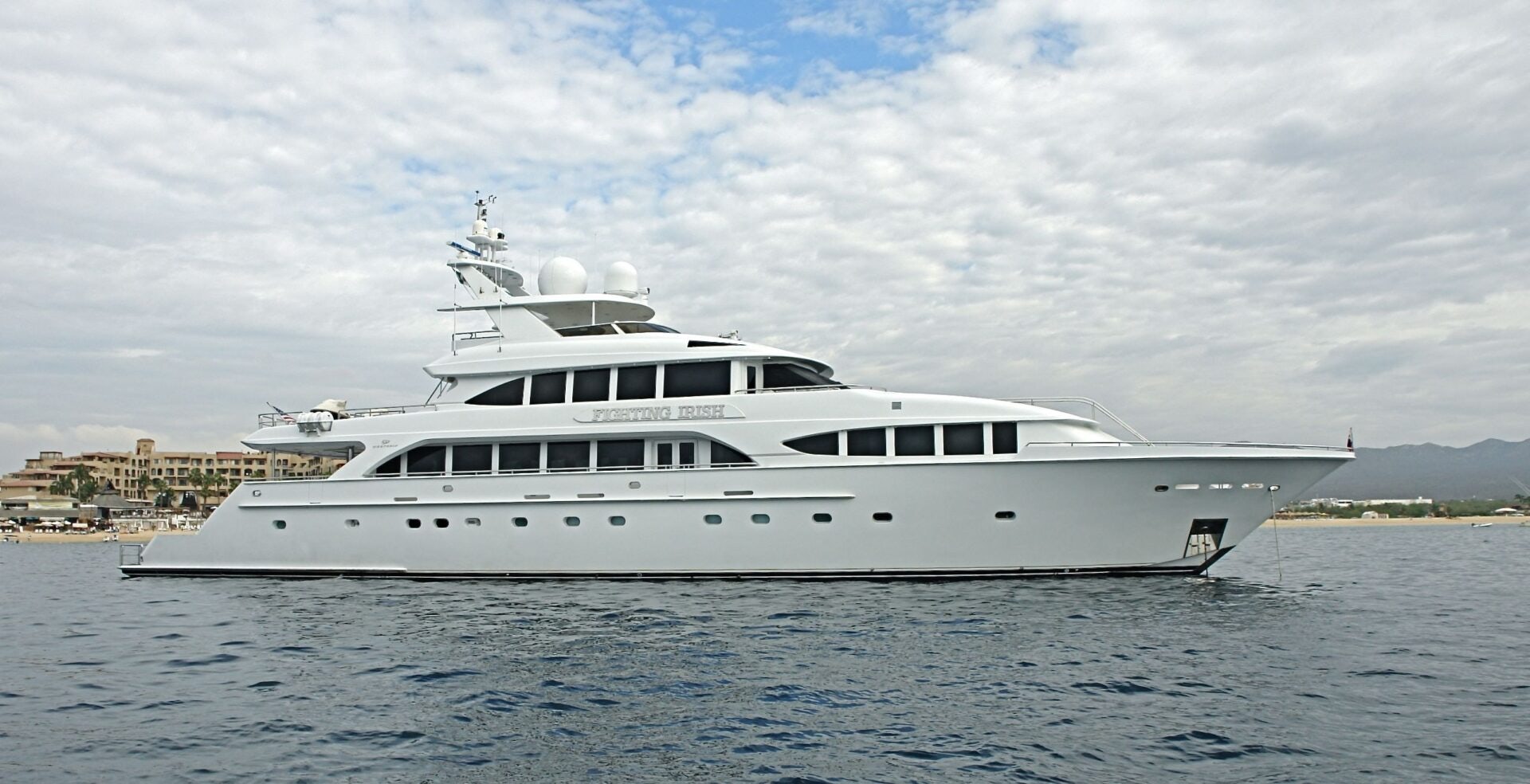 Built by Westship in 2004, FIGHTING IRISH is the largest from the American builder. On deck, FIGHTING IRISH offers a variety of amenities, including walk-around side decks on the main deck, a sundeck with hardtop and Jacuzzi and a cockpit with unfettered access to the water. Additionally, all alfresco deck spaces are complete with full bars.