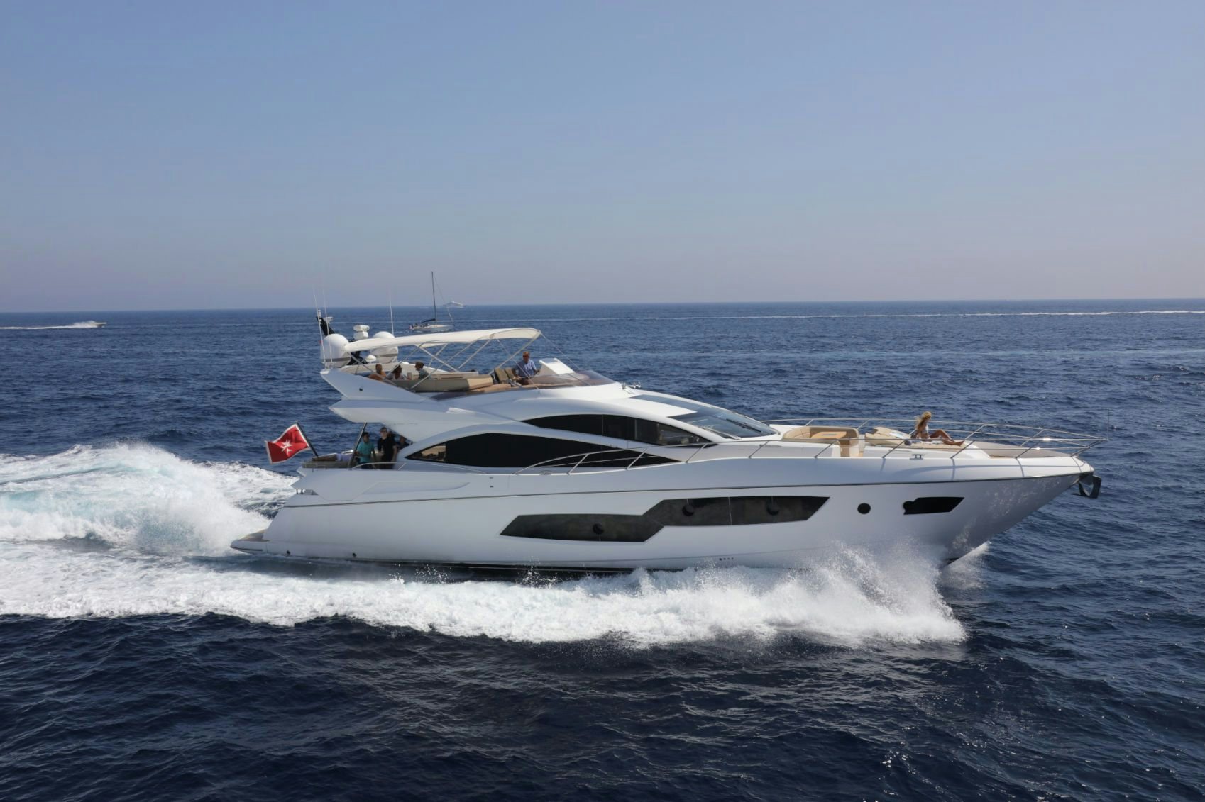 Kept in pristine condition since her launch in 2014, ALLEGRIA is a fine example a Sunseeker yacht built to high specifications. The luxury yacht’s interior is adorned with bespoke linens and Ralph Lauren fabrics further complemented by black American walnut to create a chic, relaxed atmosphere.