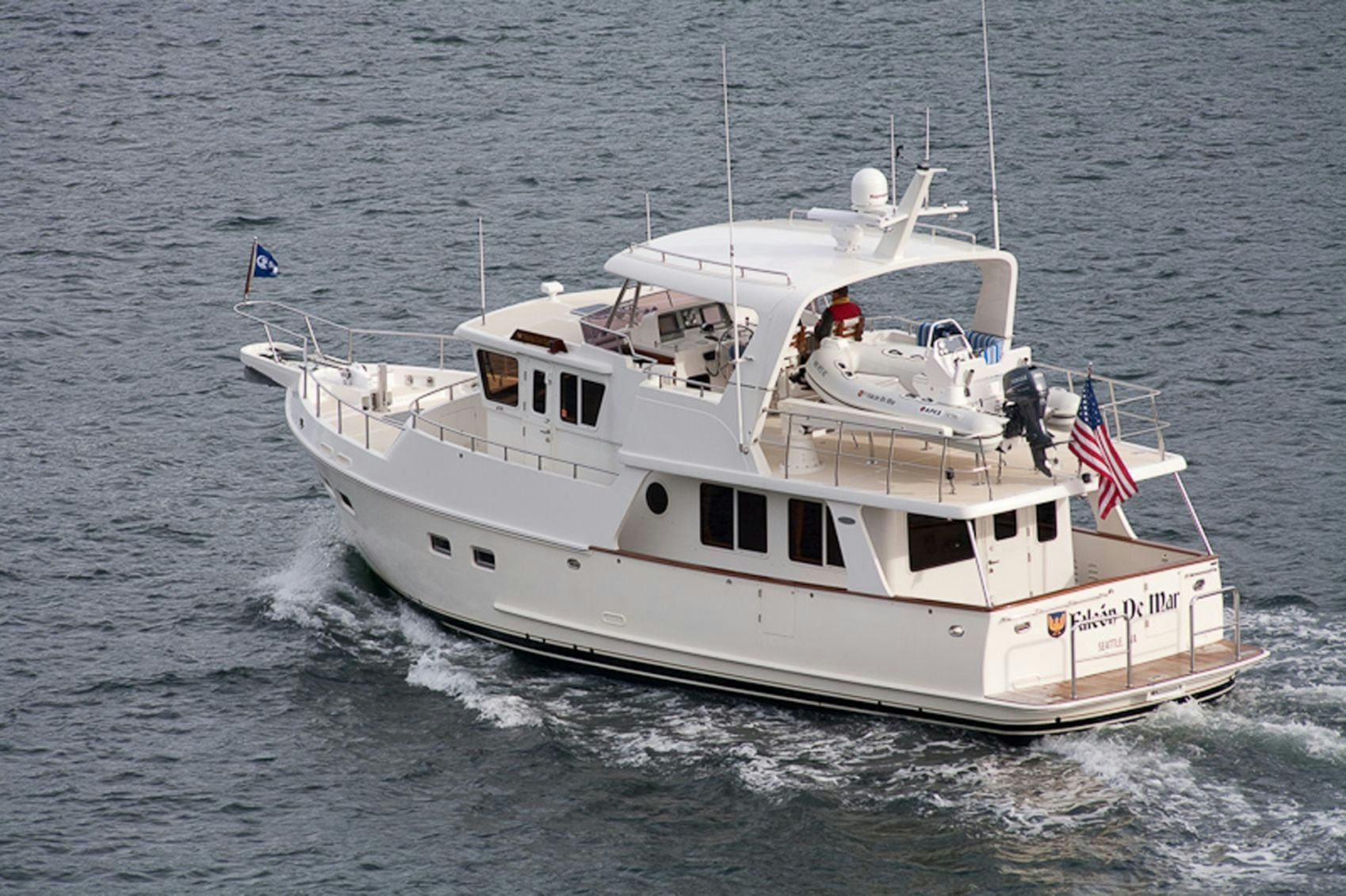 FALCON DE MAR's interior was designed by Howard Chen; it features finely crafted satin-finished teak joinery throughout. Her exterior styling is classic with a raised pilothouse, flybridge and fiberglass hardtop.