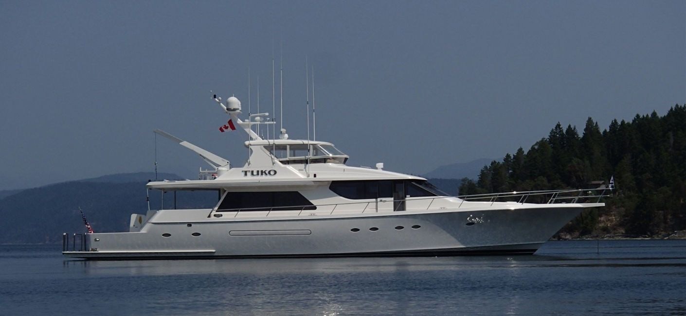 Designed by Jack Sarin and built by West Bay in 2004, TUKO boasts numerous custom features and is an excellent blend of classic and contemporary styling. She is ideal for family cruising with or without crew.