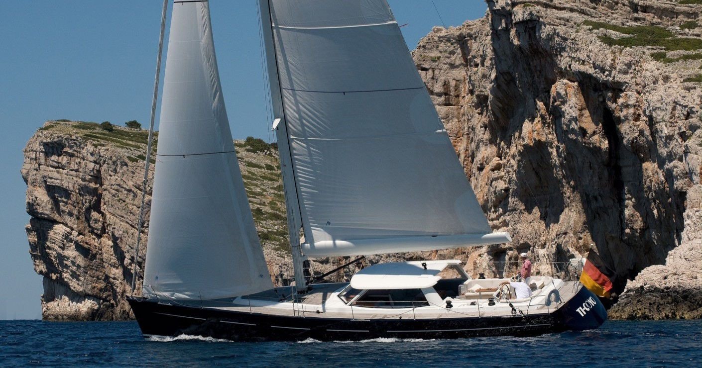 TI-COYO’s hull and deck laminates were made in advanced-composite construction with multi-axial carbon fibre reinforcements and foam core. She features line storage inside coamings close to all winches and a nice division between steering cockpit, sailing cockpit and deck salon. A second helm station can be found in her deck salon.