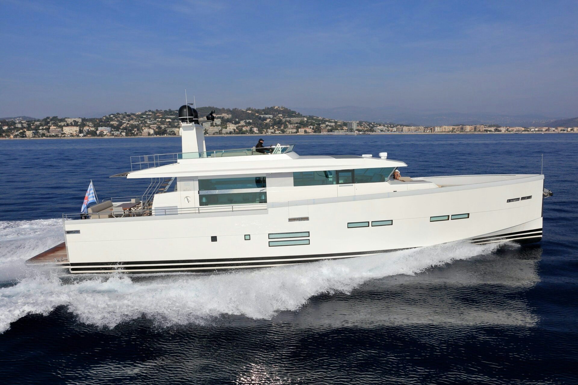 SAMISA is a stunning carbon yacht built to MCA compliance by Delta Powerboats in 2014. Featuring three Volvo Penta IPS-1200 900hp diesel engines the luxury motor yacht has economic fuel consumption, an 18-knot cruising speed and a 34-knot top speed.