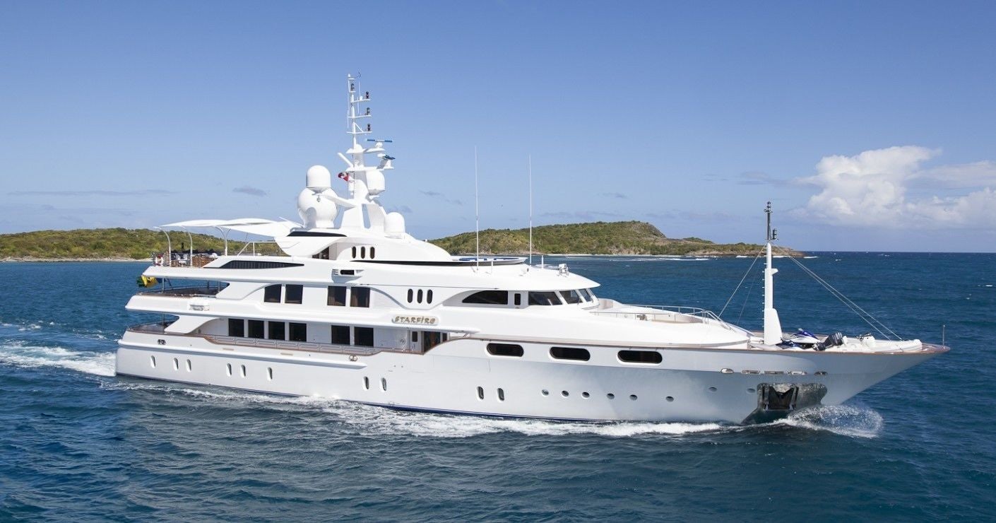 The striking Benetti motor yacht STARFIRE is the epitome of Italian craftsmanship and style. This pedigreed yacht was designed by Francois Zuretti, who created a comfortable onboard atmosphere centered around an Art Deco aesthetic with Oriental details. STARFIRE offers six stunning staterooms for up to 12 guests. Her charter program is best in class, and she welcomes a vast majority of her clients as repeat guests. Two salons, two dining rooms, vast alfresco spaces, a beach club lazarette, dedicated massage room, sauna, 36-foot jet tender, multitude of water toys and touch-and-go helipad are all available on board. STARFIRE also offers Quantum Zero Speed stabilizers for added comfort.