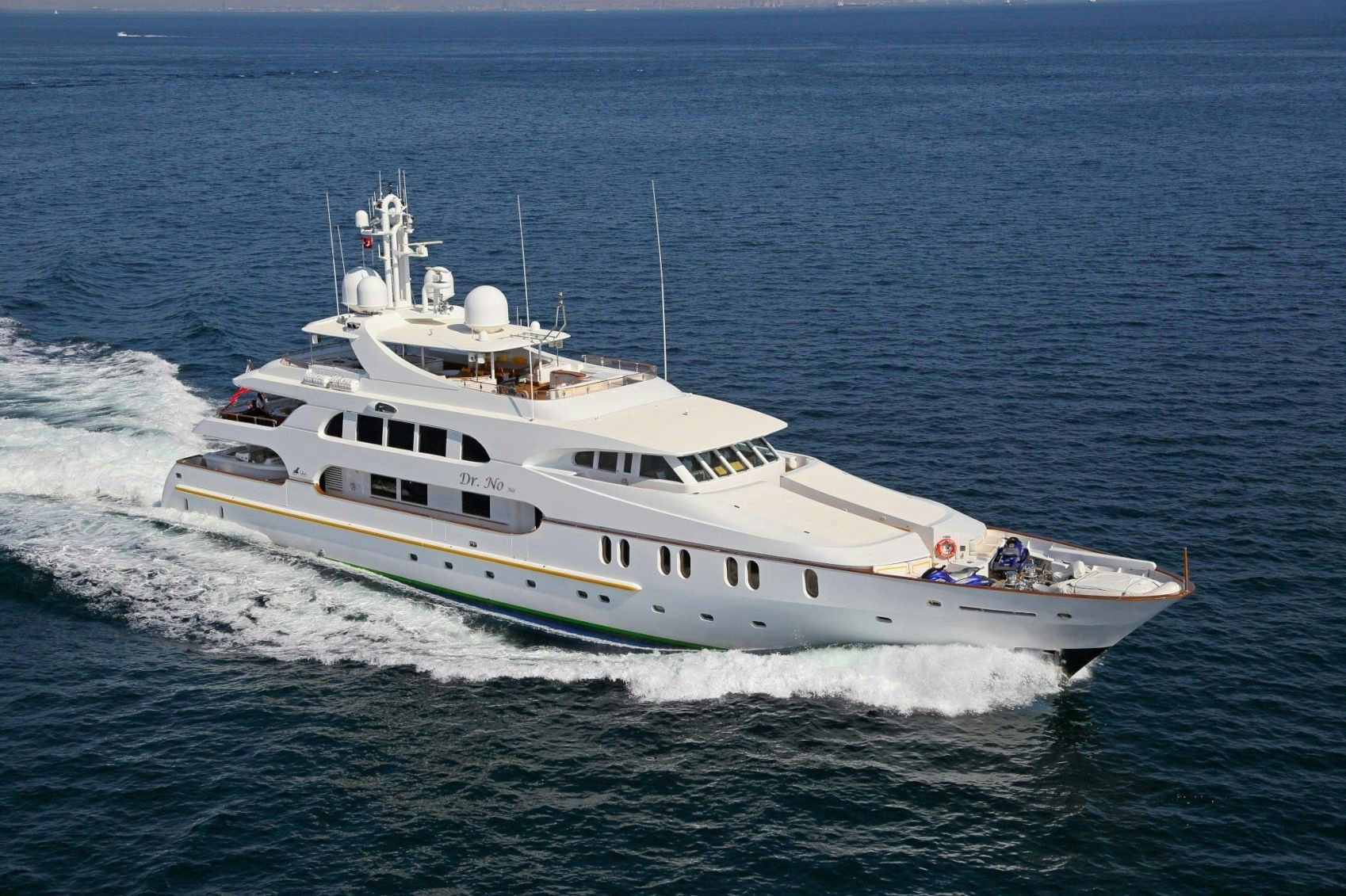 Showcasing classic styling, DR NO NO was designed by Studio Scanu and built by CRN in 1998 to Lloyds class. In 2018, the yacht received its latest refit, including new CAT generators and a new dark blue hull with white superstructure.