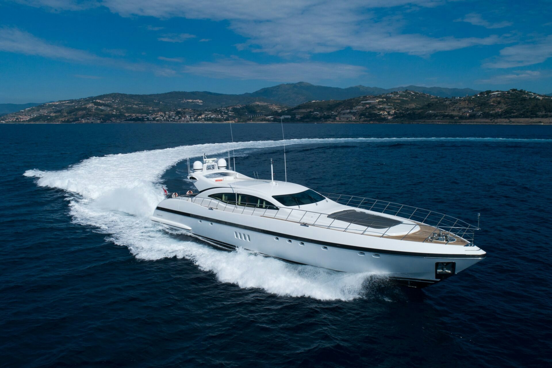 VEYRON was built by Overmarine Mangusta in 2013 as the last yacht of the 108 series. She boasts a sociable layout that exemplifies the alfresco lifestyle and luxury living — her layout is ideal for entertaining, relaxing and chartering.