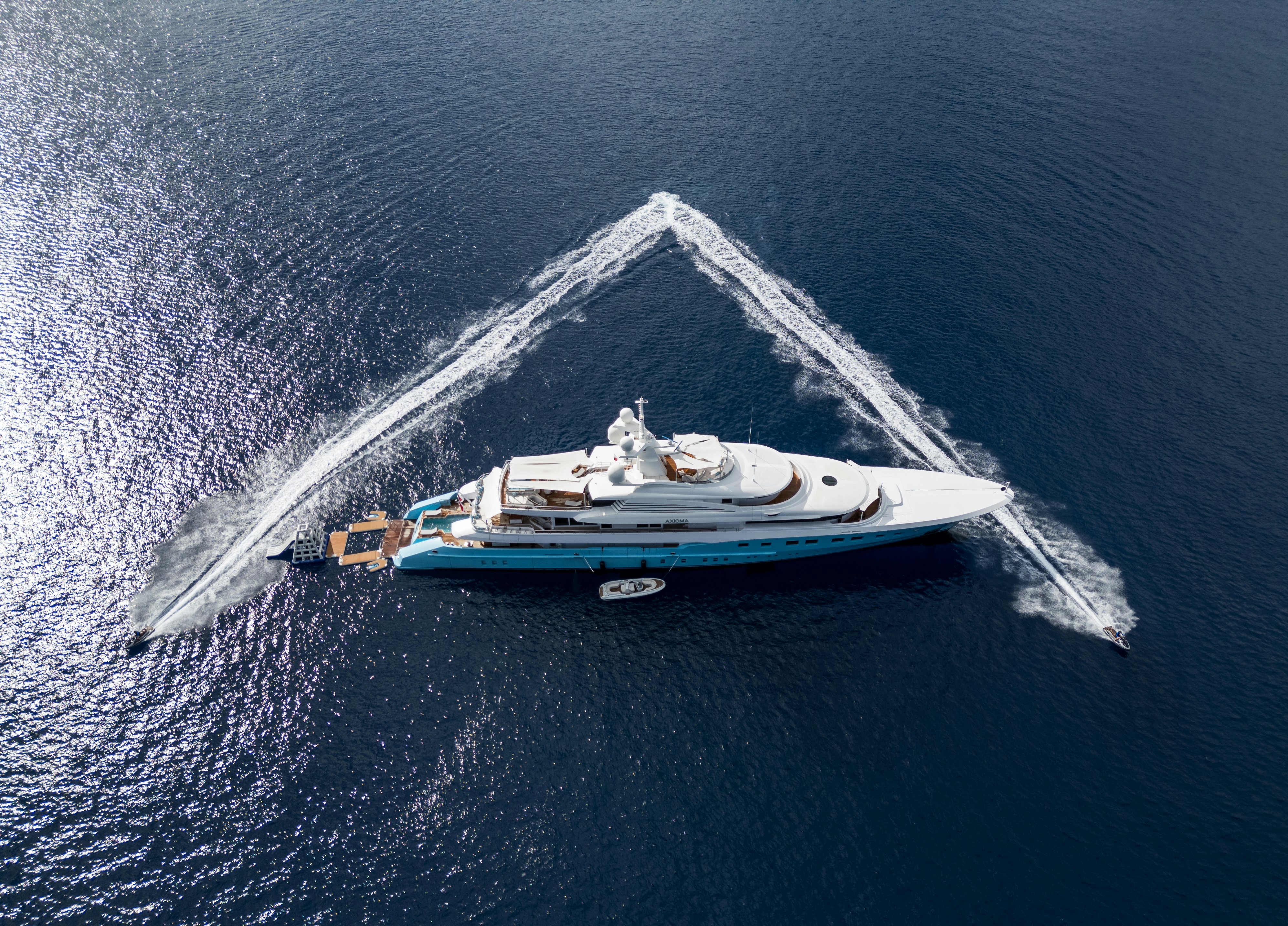 From her sleek Sterling Scott-designed exterior and a distinctive turquoise blue hull that commands attention in every port to her stunning interior crafted by the renowned Alberto Pinto, AXIOMA combines bold design with the laid-back elegance of a modern beach house. She embodies the world’s top superyacht craftsmanship, maintaining her position as the largest yacht to be launched from the Dunya Yachts shipyard.