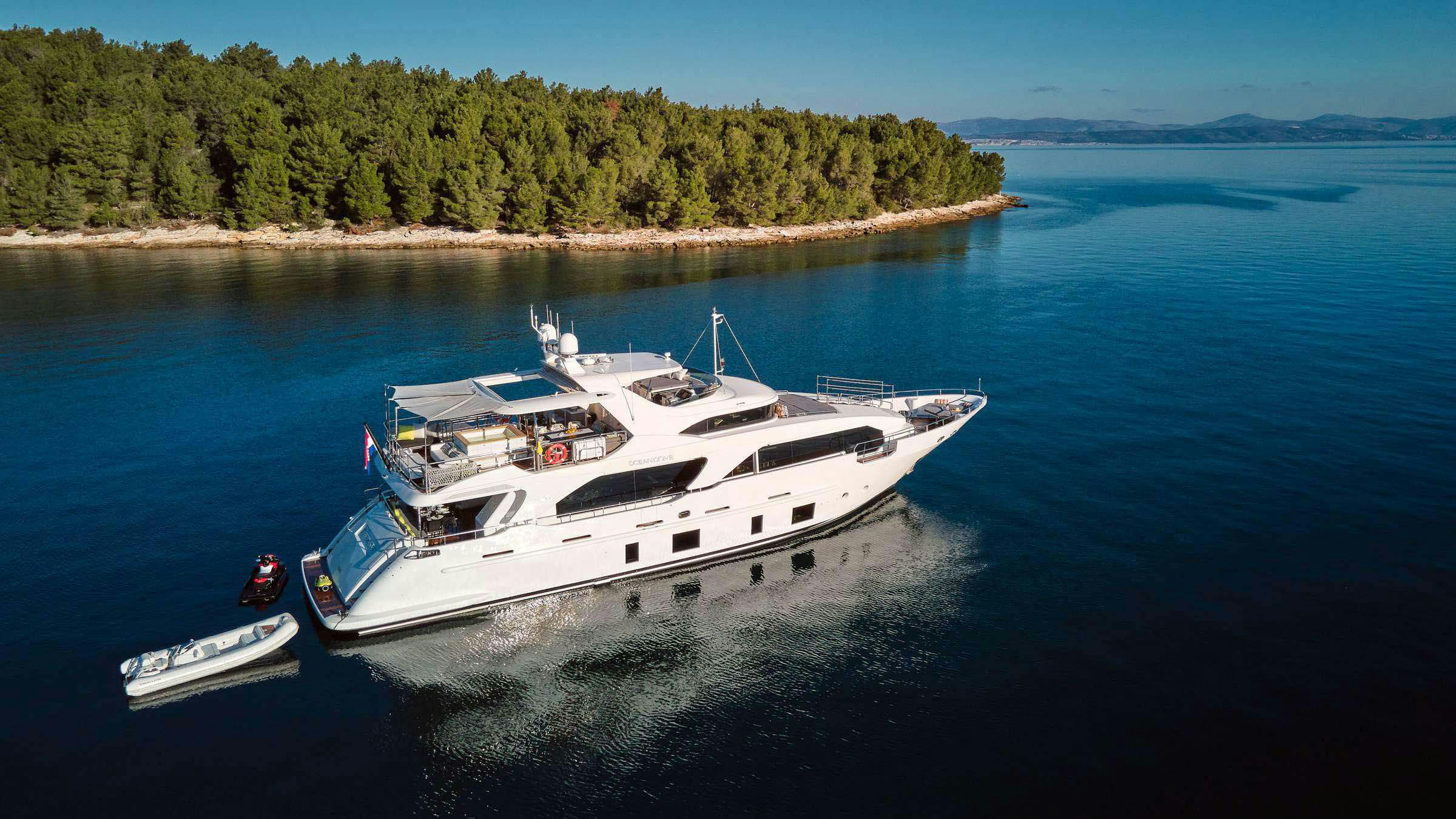 The 93.6’ (28.5m) Benetti OCEAN DRIVE is now for charter with Northrop & Johnson. The luxury yacht will cruise the East Mediterranean in the summer. Charters start at €64,000 per week, plus expenses.