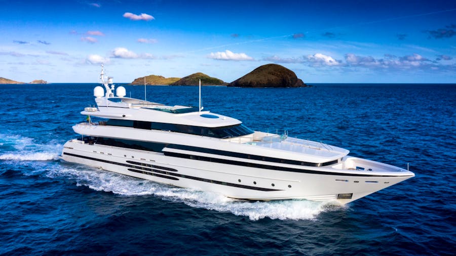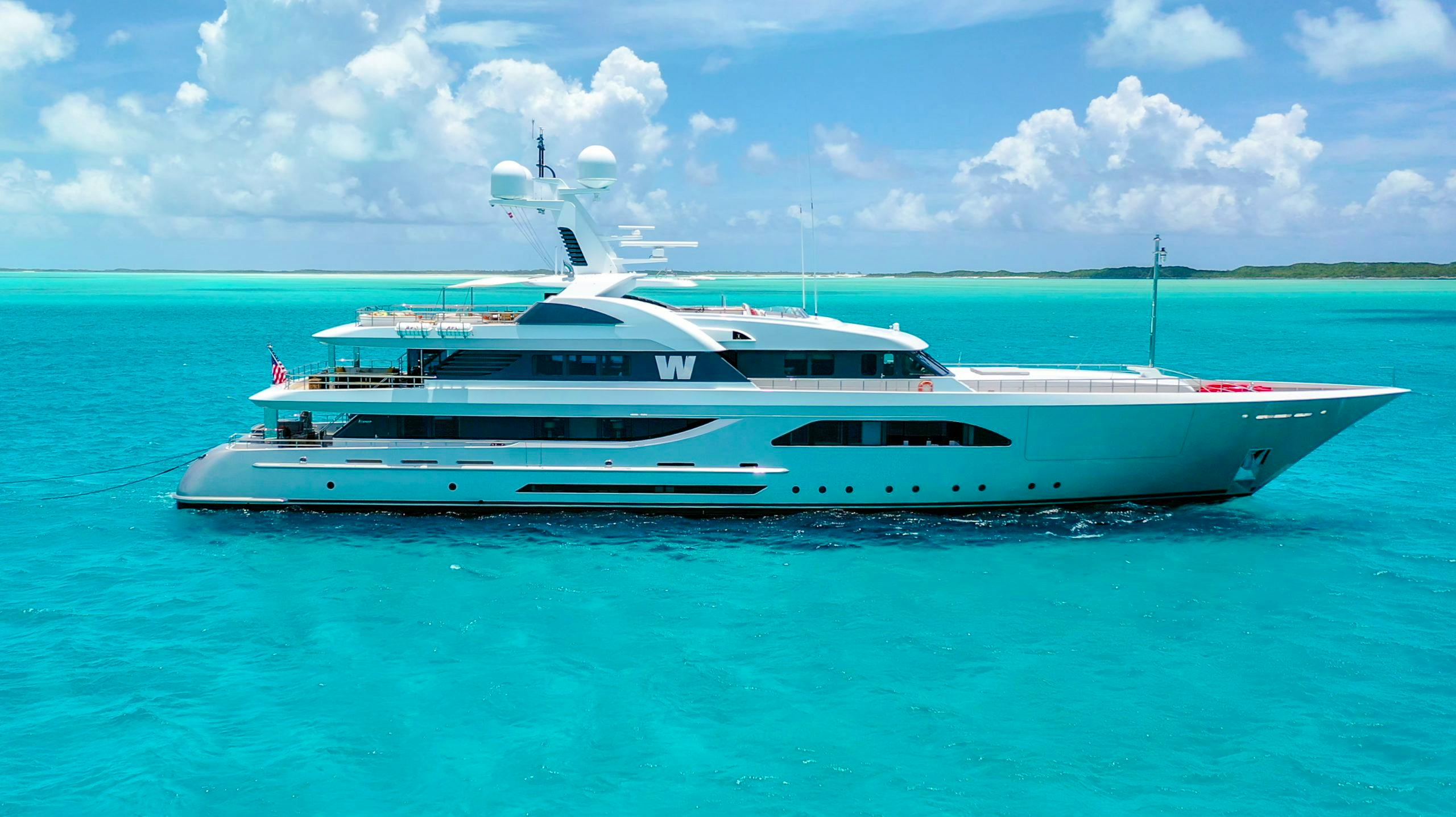 I LOVE THIS BOAT is a 145’ (44.2m) charter powerhouse. With massive sundecks, a beach club at water level, an extensive toy list and 10-person Jacuzzi, she’s the perfect option for those who love to socialize and have fun. She’s cruising in The Bahamas this holiday season; winter rates start at $155,000 per week plus expenses.