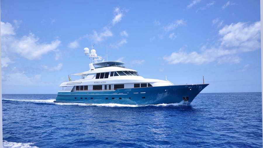 With an excellent water toy inventory, the 124’ (37.8m) FORE ACES is the perfect fit for those who love adventure. Accommodating 12 guests across five cabins, her shallow draft can take guests to small, secluded anchorages, and with zero speed stabilizers, cruising on FORE ACES is a breeze. She is priced from $125,000 per week plus expenses. Available for Christmas and New Year cruising in The Bahamas or Caribbean.