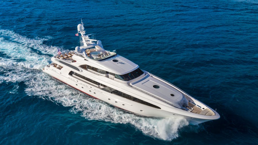 Remarkable speed combined with sophisticated style, the 154’ (46.9m) USHER is a charter yacht with a proven track record. She can accommodate 12 guests in five spacious, tech-savvy cabins. She has an enviable water toy selection, including an inflatable watersport fun park, a Jacuzzi on deck and a cinematic experience with an 80-inch TV in the main salon, USHER evokes true leisure and relaxation. Available in The Bahamas, starting at $179,000 per week plus expenses.