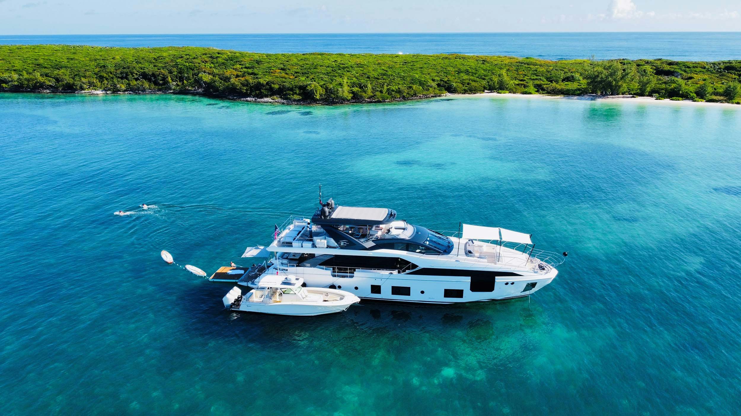 The charter yacht’s exterior offerings are second to none. From the relaxing, cozy aft deck setup to the lively flybridge and private foredeck, SEA OWL is a haven of entertainment. Guests can look forward to sunbathing with a cocktail in hand on the loungers and sipping champagne at sunset on the foredeck. When guests have a taste for adventure, they can head to the swim platform to try their hand at the water toys.
