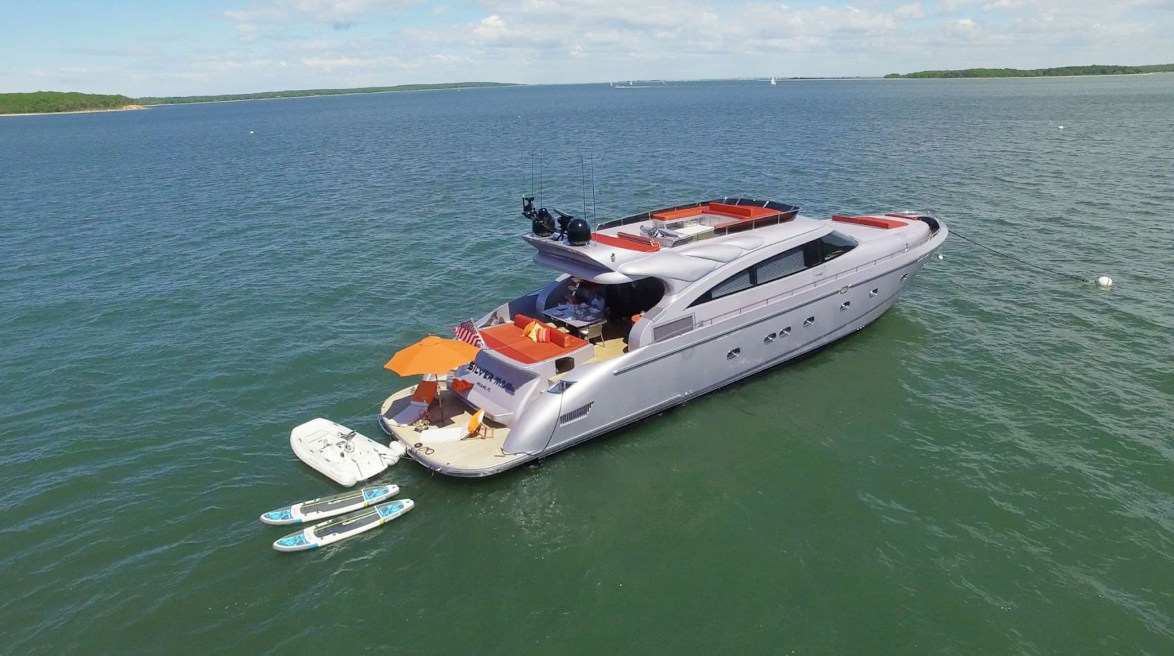 SILVER MAMA boasts multiple exterior living spaces for charter guests to enjoy alfresco dining, sunbathing and relaxation. Her spacious swim platform provides charter guests the perfect spot to enjoy the yacht’s tender and toys.