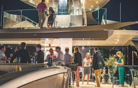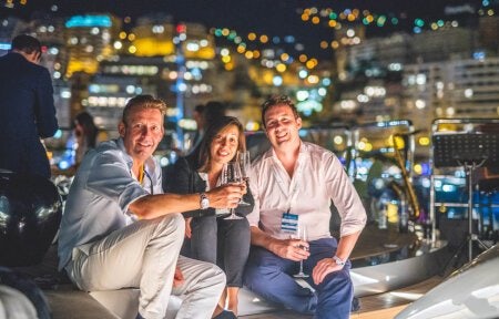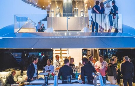 Excited guests explored the yacht, which debuted with much anticipation at this year’s Monaco show, and enjoyed live jazz music and balmy breezes on the flydeck with the glowing principality as a backdrop while a pianist tickled the ivories in the upper-deck salon. This event presented a unique opportunity for charter brokers to discover the qualities of this striking new yacht and the crew who make the magic happen.