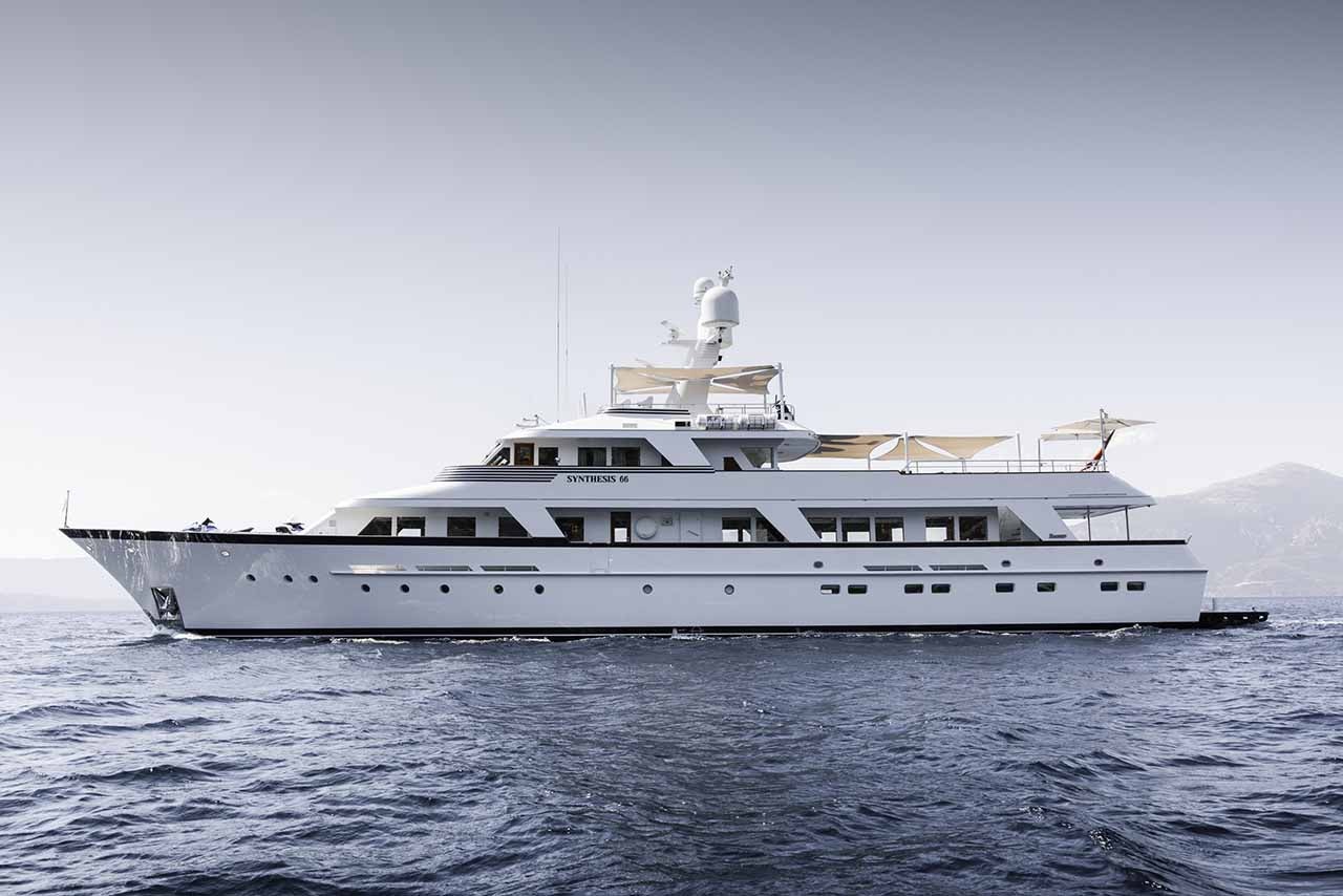 Built in 1982, SYNTHESIS 66 recently underwent major refit works at Monaco Marine. This is the first time she’ll be on display since the refit, and she looks incredible. We predict the most popular spot on board will be her breezy sun deck; well laid out with different zones for socializing and relaxing, it features two pivoting widescreen TVs, a bar, a Jacuzzi and plenty of plush seating for hanging out with the most panoramic backdrop. She is also a member of Feadship’s heritage fleet.