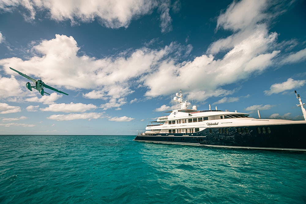 The objective of the video is to showcase the complete charter experience, so a seaplane was hired for the N&J team to arrive at UNBRIDLED, anchored close to Norman’s Cay in the Bahamas. The captain and his team positioned themselves strategically to film the landing of the aircraft and the arrival of the video team on board the yacht. The chef’s onboard feature in the finished production highlights the importance of excellent cuisine on a charter yacht. The entire crew also enjoyed using the armada of water toys so that viewers can get a taste of the kind of fun experience charter guests can enjoy.