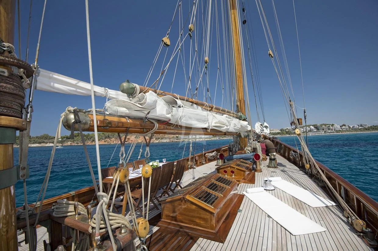 The 125-foot (38.1m) AELLO brings together history, incredible craftsmanship, speed and unparalleled beauty. Constructed in 1921 by legendary German shipbuilder Max Oertz, AELLO originally belonged to the prominent Greek Egyptian merchant Antonis Benakis, who bestowed important museums and collections to Greece. During her century-long history, AELLO has sailed the seven seas, exploring far-flung destinations and winning prestigious regattas. AELLO was sold after World War II and subsequently abandoned in a mud-berth in England that fortunately preserved her hull for nearly four decades. In 1985, her fortunes changed as she was discovered by New Zealander Cameron Chisholm, who undertook a lengthy restoration that lasted more than four years, bringing her back to her former glory. This wonderful vessel is the perfect charter yacht for social gatherings as well as families looking for a unique charter experience.