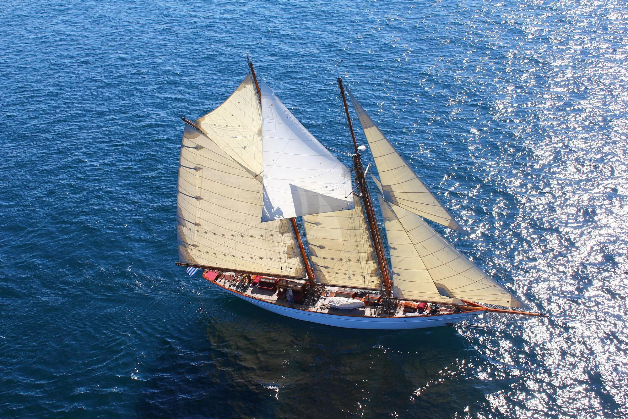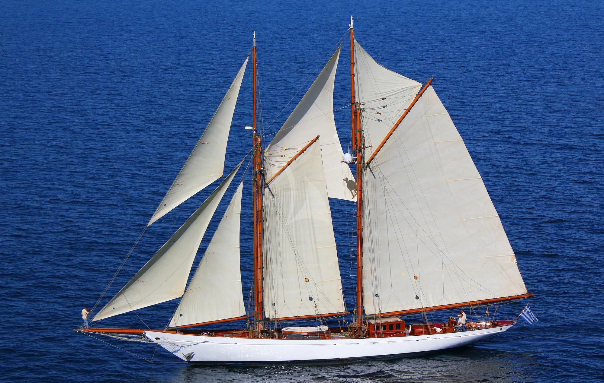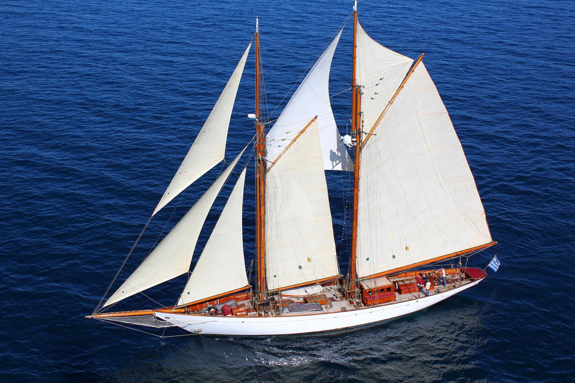 With an impressive 553 square meters of sail area, AELLO has a speed of 12 knots under sail with 23 knots wind speed on the beam. She is also powered by a Cummins MerCruiser QSL 9-M/325 BHP Diesel engine. As one of the rarest and most iconic schooner vessels, charter yacht AELLO will provide the most memorable charter experience for her guests.