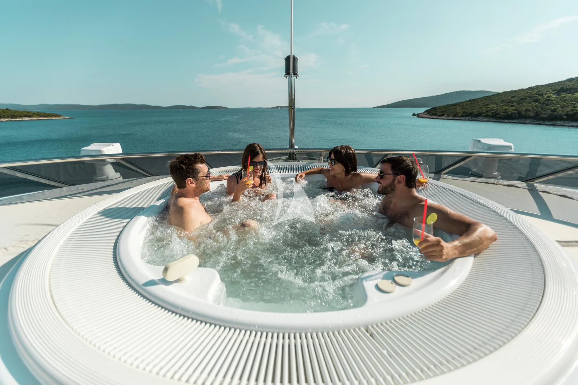 AGRAM’s hull is both modernly stylish and sleek, with her sporty profile going hand in hand with her exceptional cruising performance. She boasts three expansive and generous deck spaces. AGRAM’s main aft deck is the perfect place for alfresco dining, whilst her sundeck offers guests total relaxation thanks to its bar, alfresco tables, a Jacuzzi and surrounding sun pads.