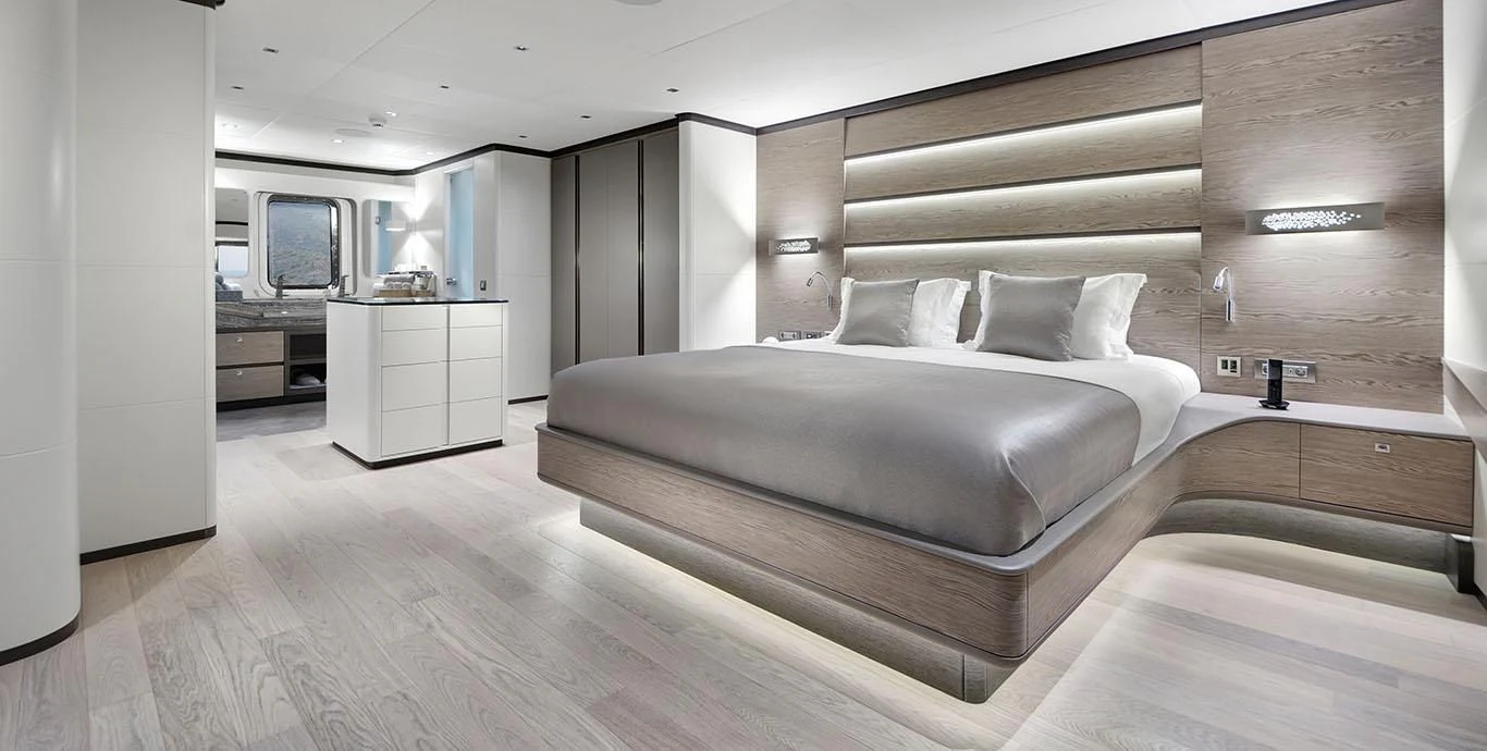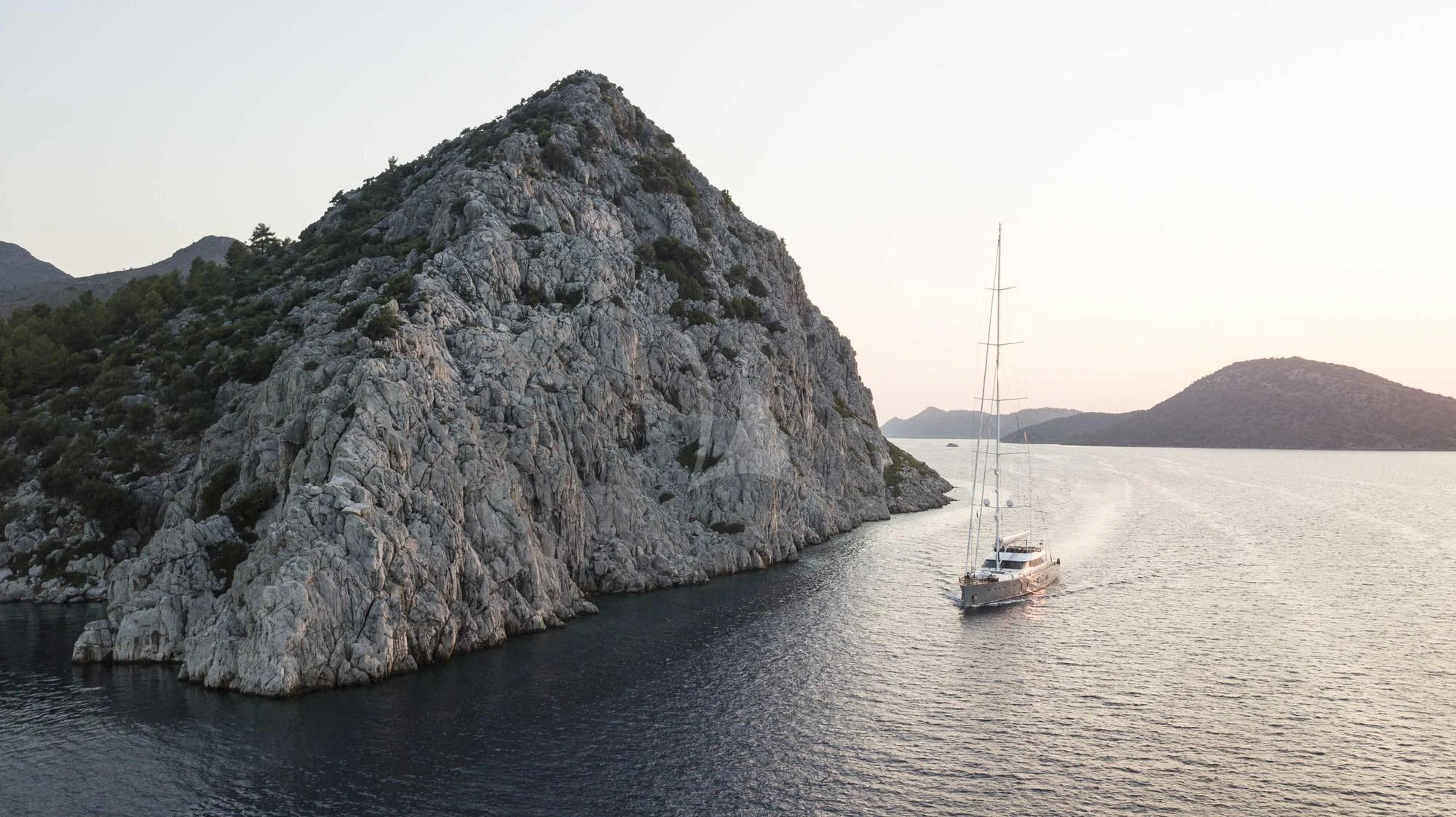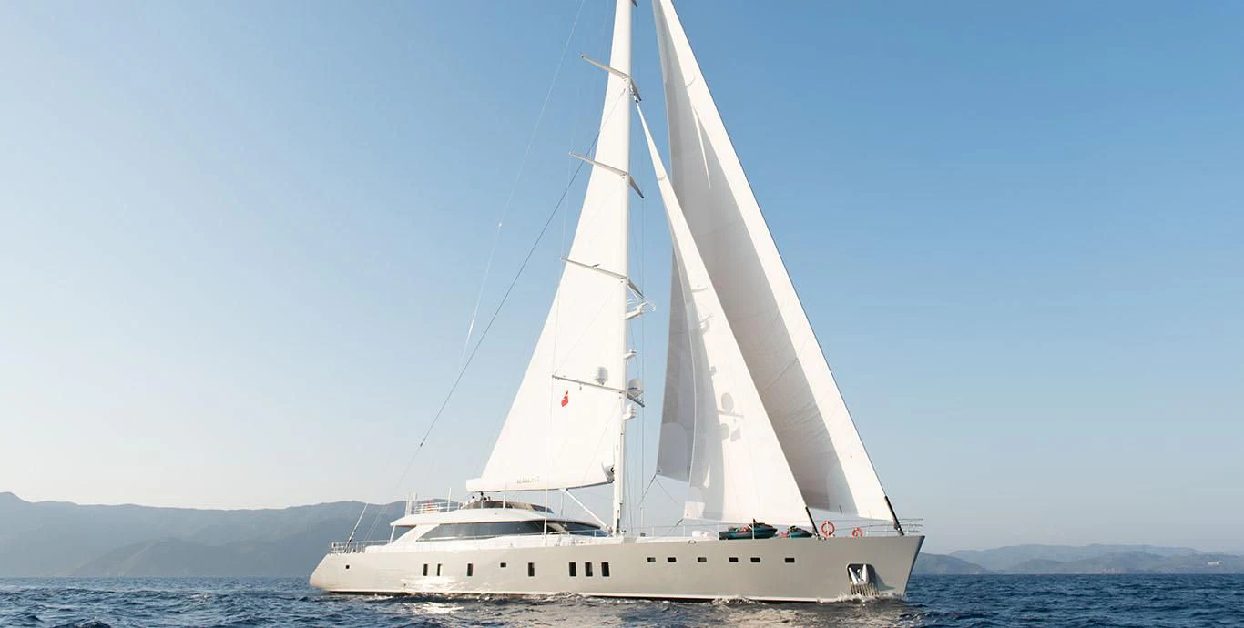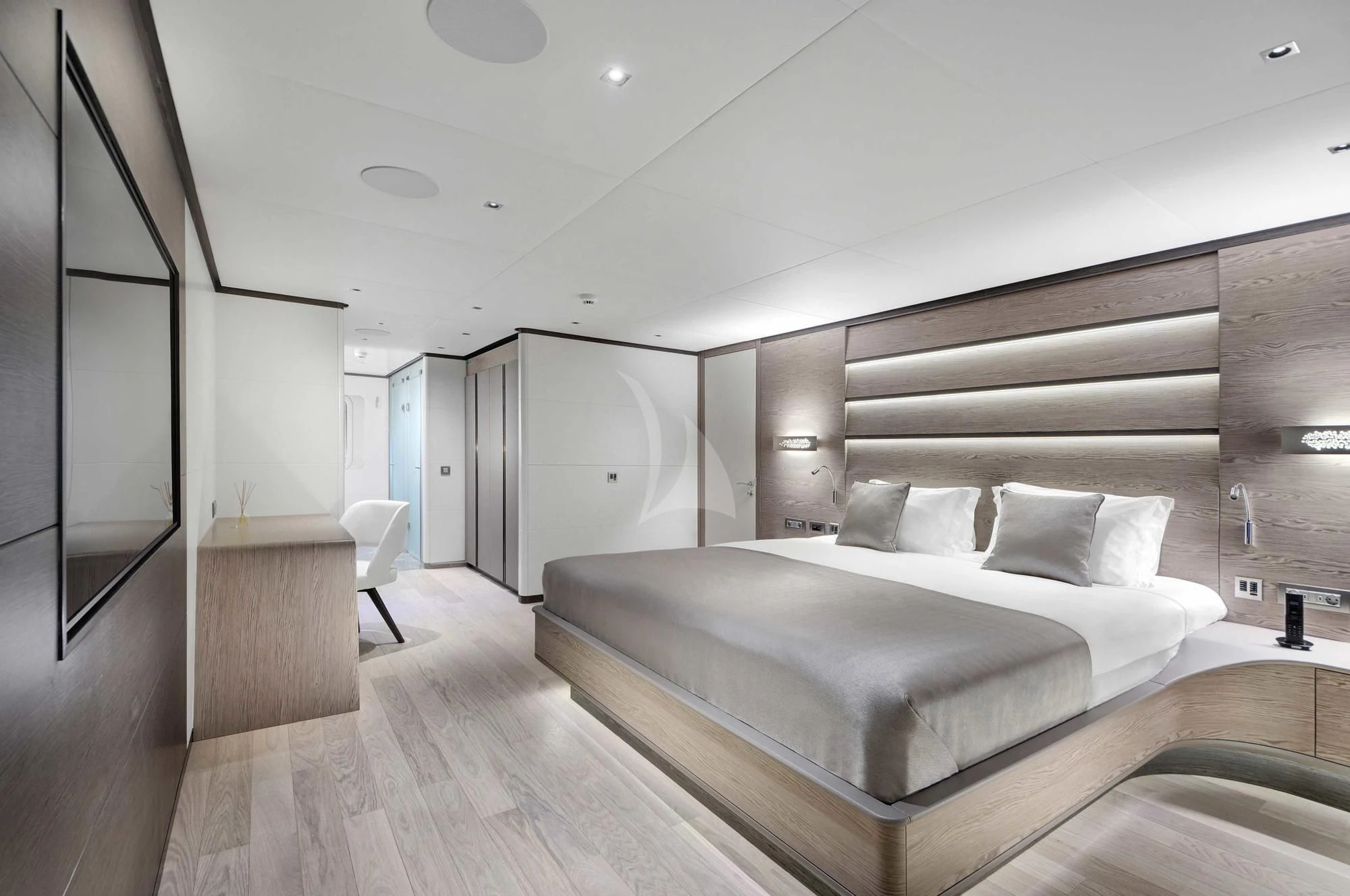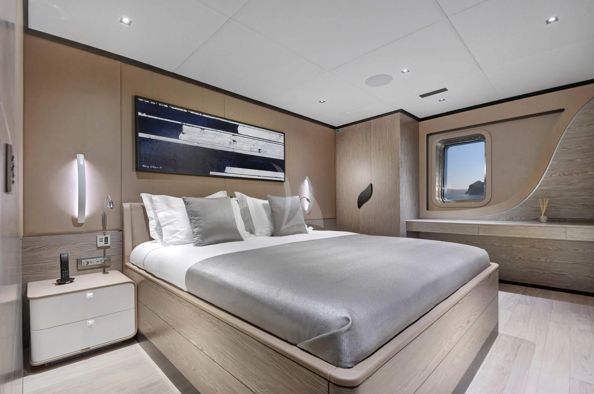 ALL ABOUT U 2 has an aluminum superstructure and a steel hull. She is designed to offer guests a superior sailing performance on the open seas, and her charters in the Mediterranean enable her to show off her cruising capabilities. Powered by twin Caterpillar engines, she cruises at 12 knots as she escorts guests along the Turkish coastlines. She has a top speed of 16 knots. ALL ABOUT U 2 is staffed by an expert crew of 10. This talented team creates compelling itineraries and ensures every detail of a charter is exceptional. The six private staterooms comprise a master, a VIP and four doubles. The master is full-beam and incorporates a dressing room.
