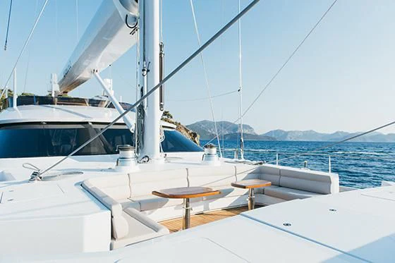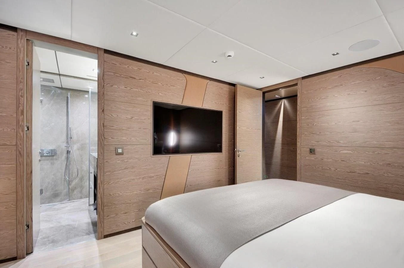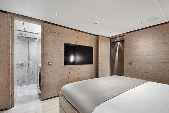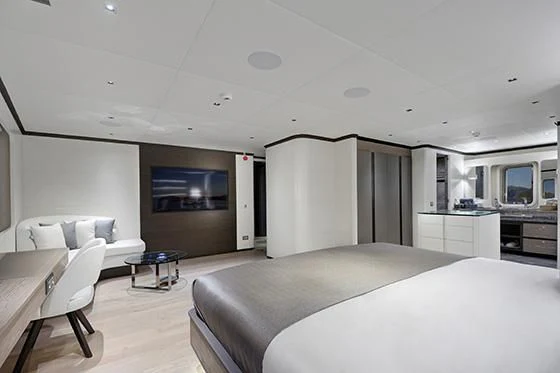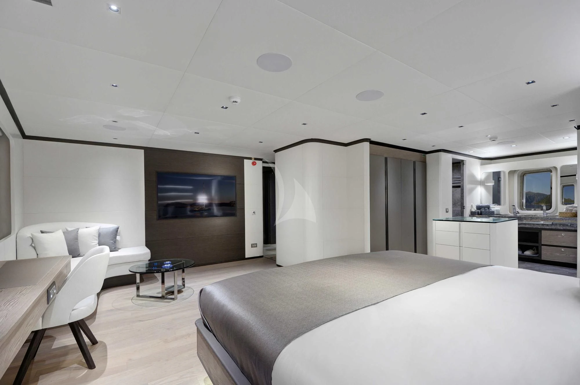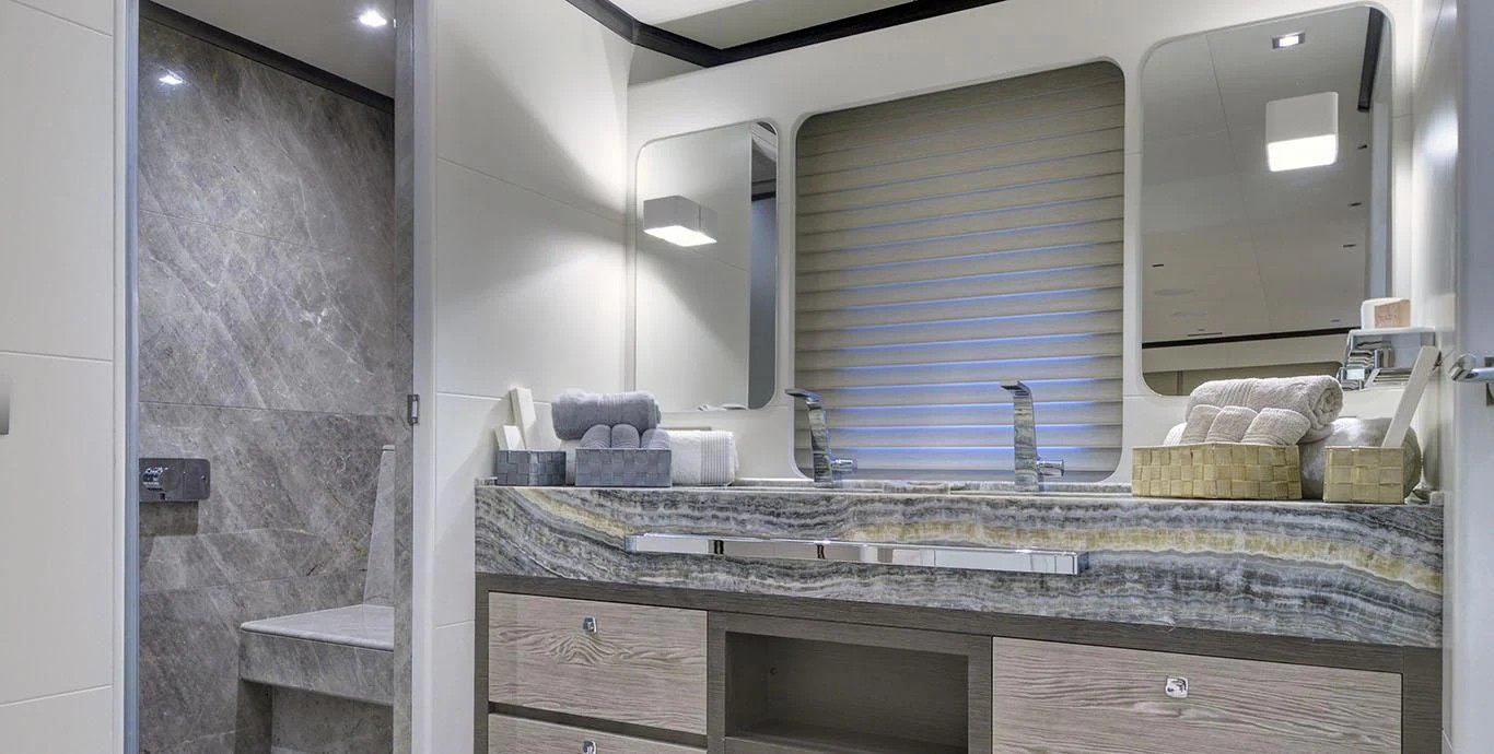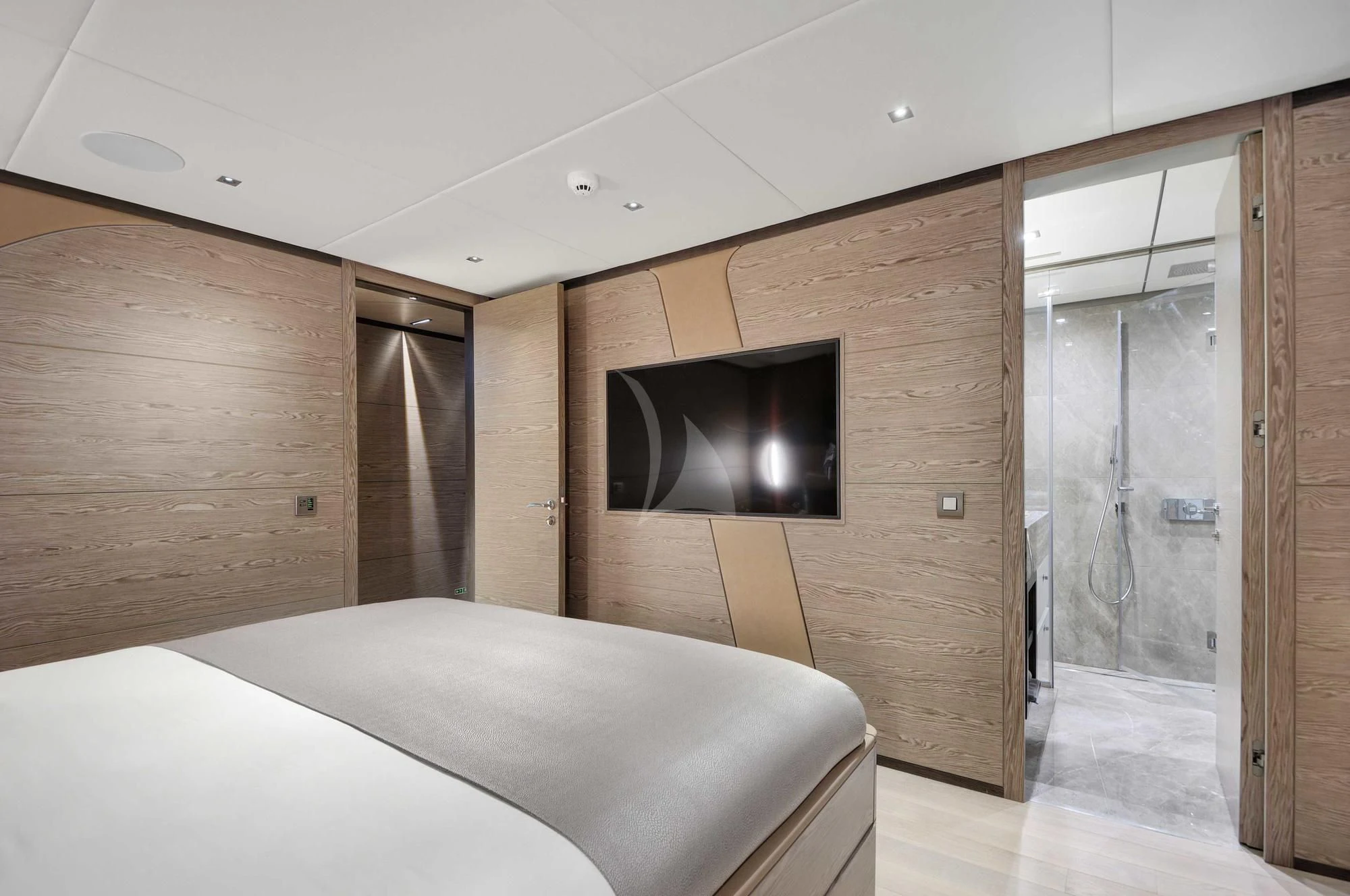 ALL ABOUT U 2 has an aluminum superstructure and a steel hull. She is designed to offer guests a superior sailing performance on the open seas, and her charters in the Mediterranean enable her to show off her cruising capabilities. Powered by twin Caterpillar engines, she cruises at 12 knots as she escorts guests along the Turkish coastlines. She has a top speed of 16 knots. ALL ABOUT U 2 is staffed by an expert crew of 10. This talented team creates compelling itineraries and ensures every detail of a charter is exceptional. The six private staterooms comprise a master, a VIP and four doubles. The master is full-beam and incorporates a dressing room.