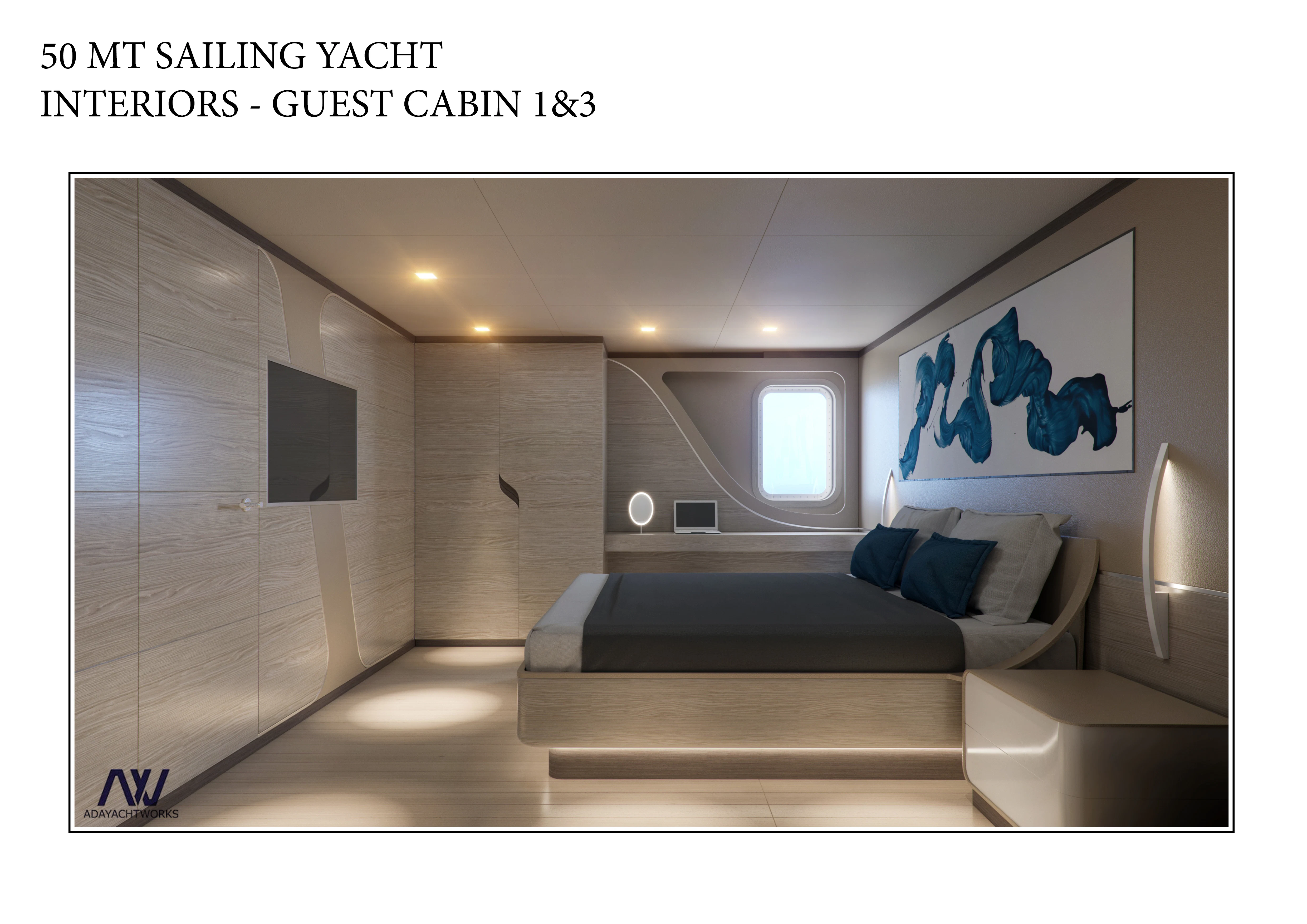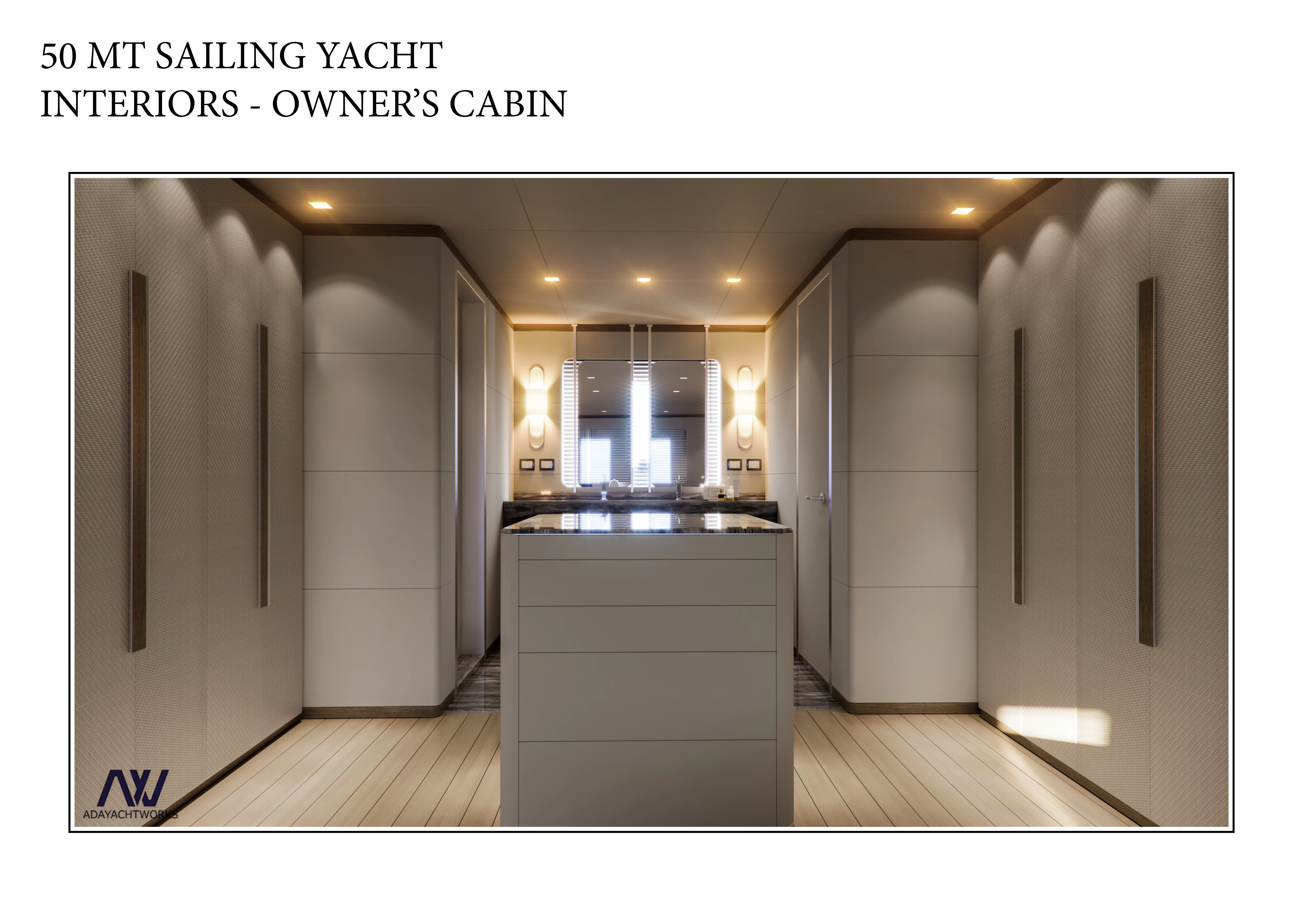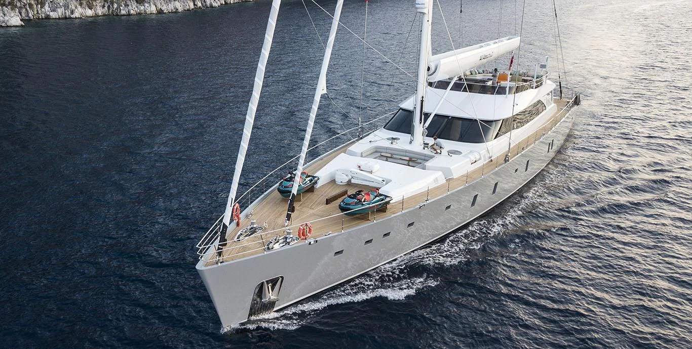 In 2019, ADA Yacht Works created the 164'1" (50m) ALL ABOUT U 2. She is a striking motor sailor with a beam of 34'3" (10.44m), and a draft of 12' (3.65m). She can accommodate up to 12 guests in six elegant staterooms, and she welcomes them to impressive shared social areas. The yacht’s interior design is from ADA Yacht Works and her exterior design is from Ginton Naval Architects. Her flexible arrangements and diverse amenities mean she suits both parties of friends or family groups.