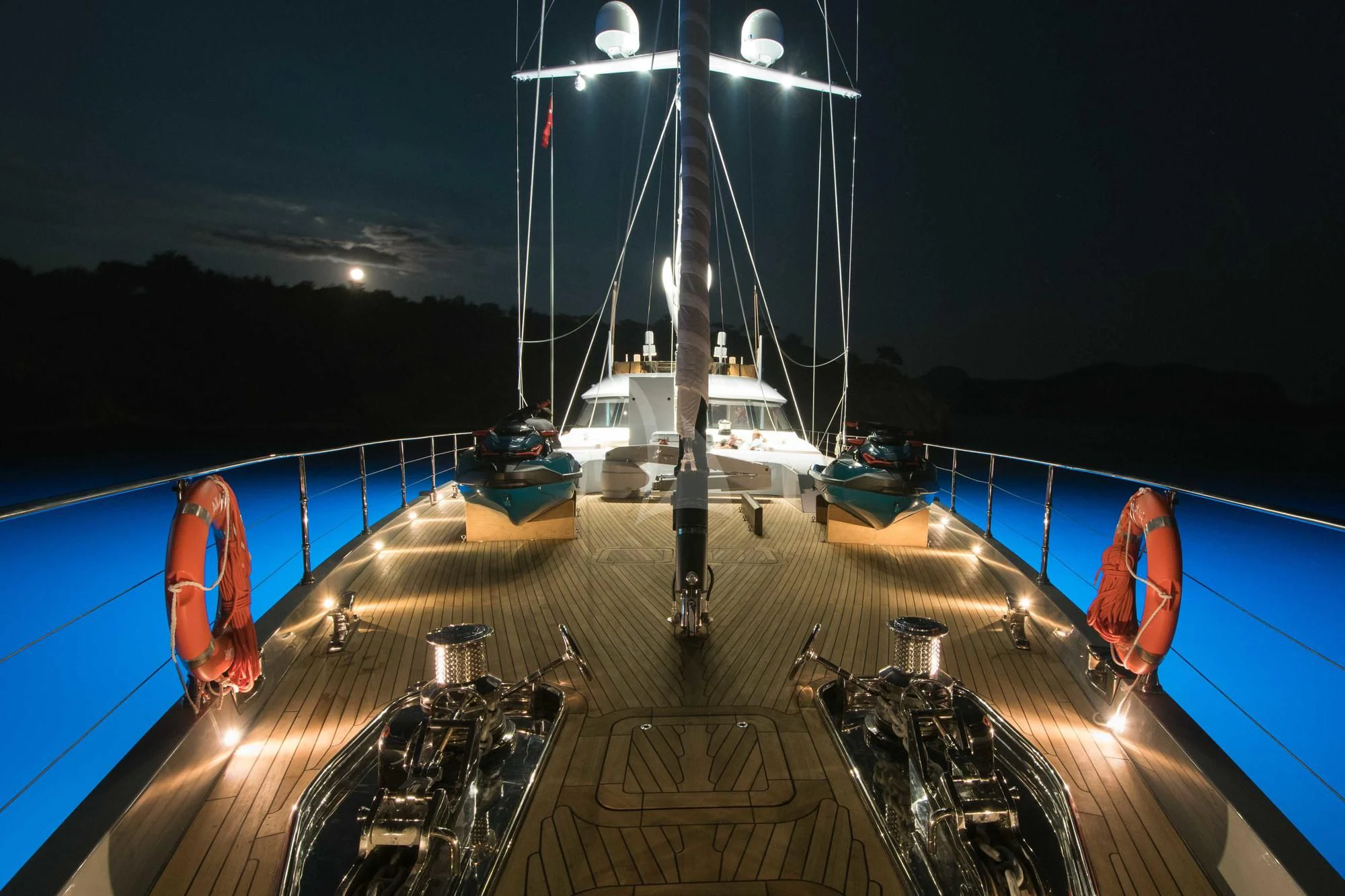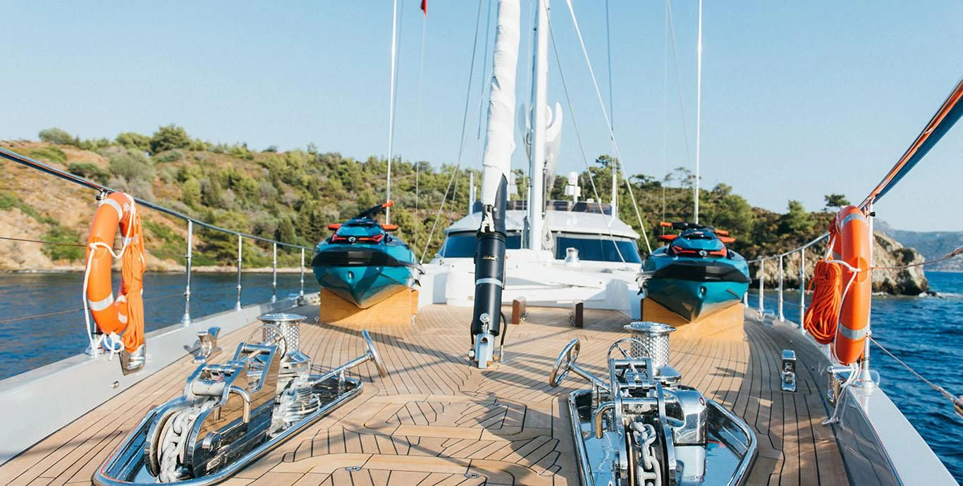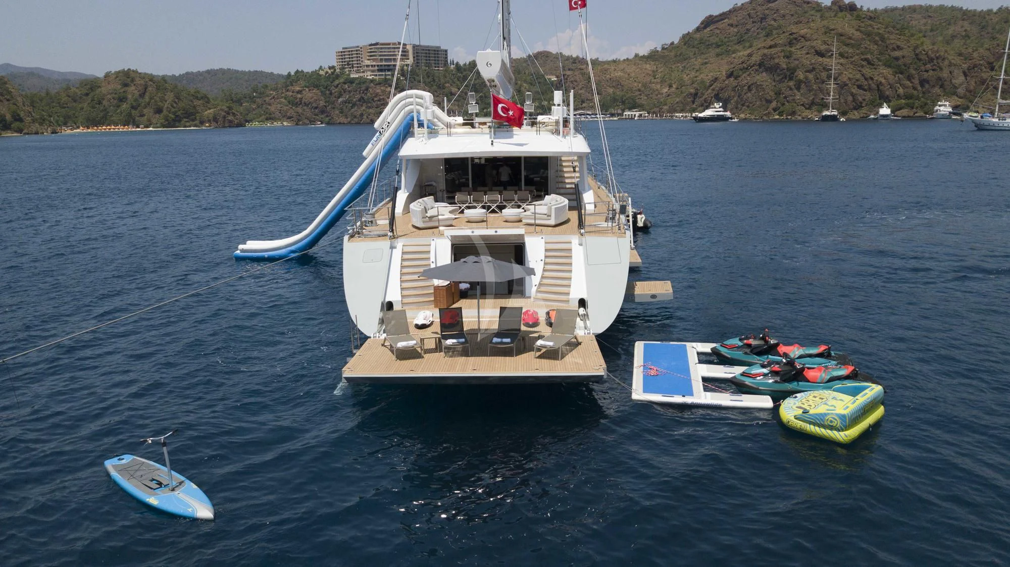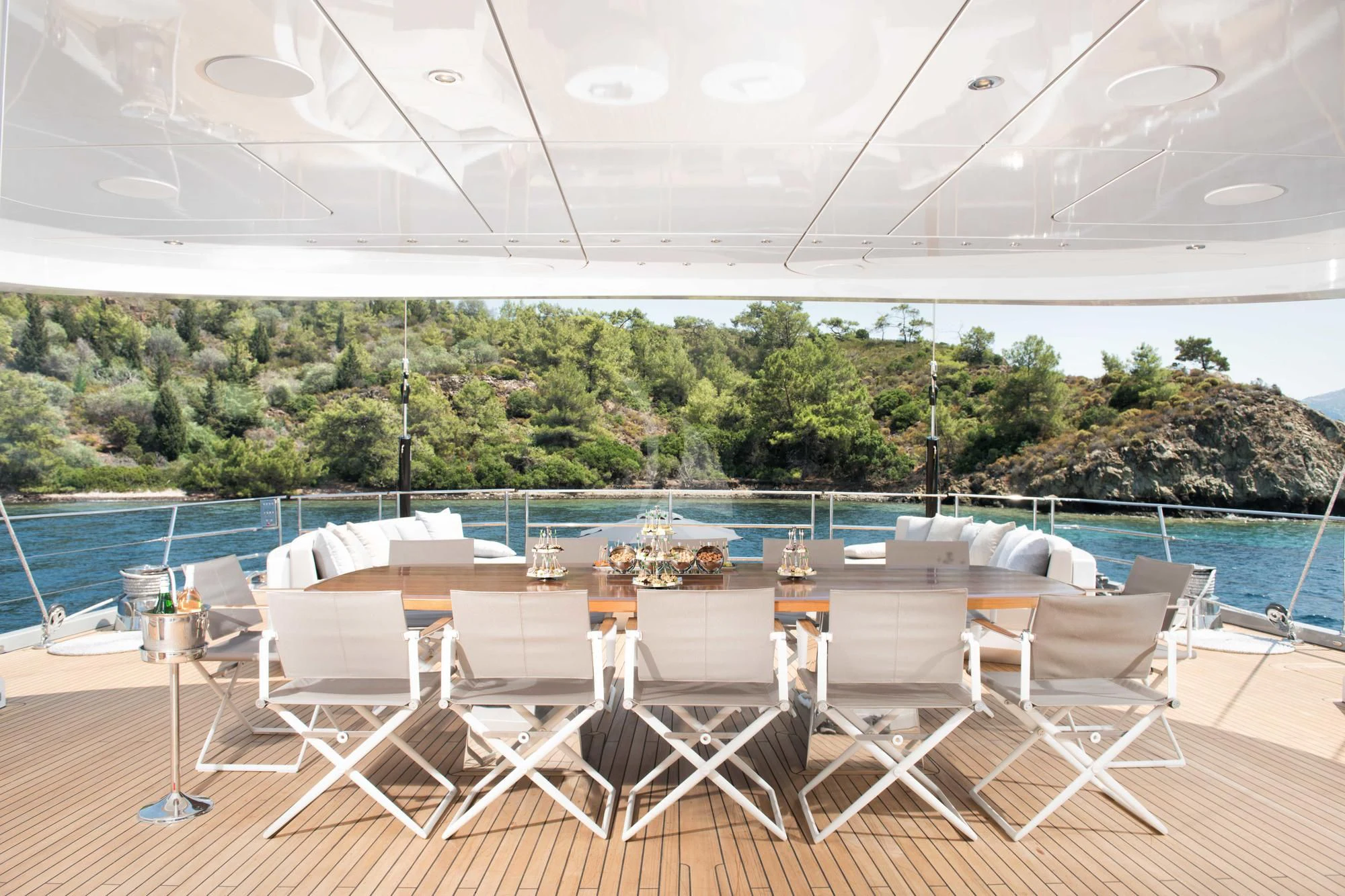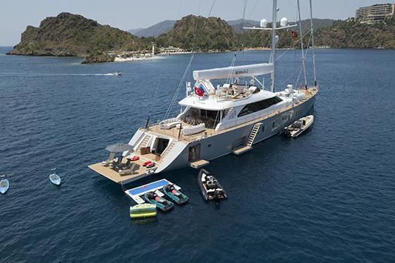 Among her many features, ALL ABOUT U 2 has a beach club giving guests the perfect place to relax in the sun, as well as easy access to the ocean. The guests can have fun with the toys, including a Jet Ski, paddleboard, canoe, SeaBob, water ski, banana, snorkeling gear, and fishing equipment. The Turkish waters are perfect for swimming with scenic backdrops. A tender is available to escort the guests ashore to explore cities, villages, ancient sites, and world-class restaurants and beaches.