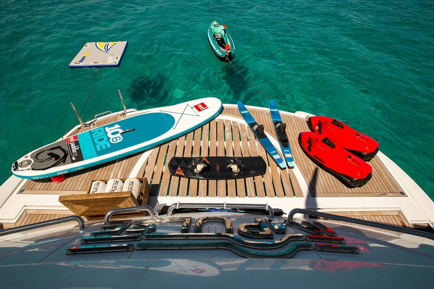 The 92-foot (28m) Sunseeker BIANCINO is an excellent choice for a luxury charter yacht with family or friends. She has an extensive list of water sports and great outdoor space for both sunbathing and alfresco dining.