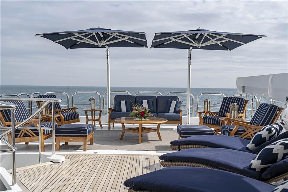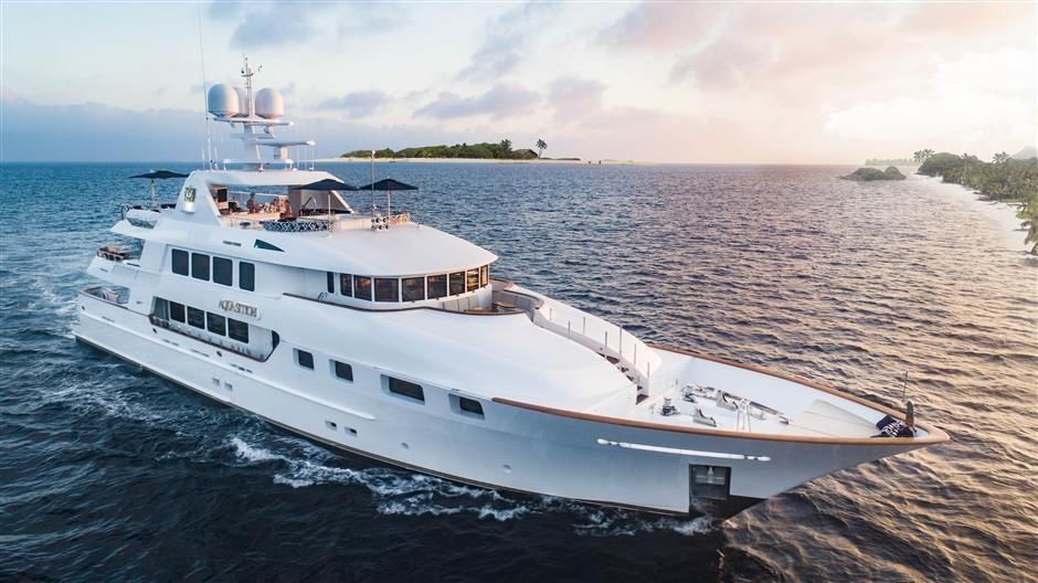 With a cruising speed of 12 knots, a maximum speed of 17 knots and a range of 2,784nm from her 11,625 gallons fuel tanks, AQUASITION is the perfect combination of performance and luxury. With a modern stabilization system reducing roll motion both underway and at anchor, AQUASITION is a comfortable proposition whatever the conditions. Her incredible crew, fabulous interiors and wealth of entertainment options make AQUASITION the ideal choice for your luxury charter vacation.