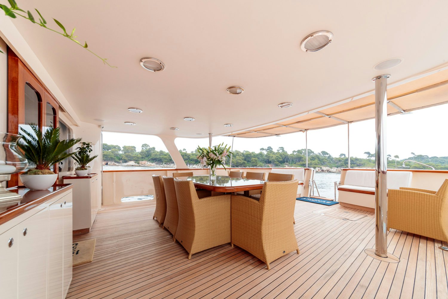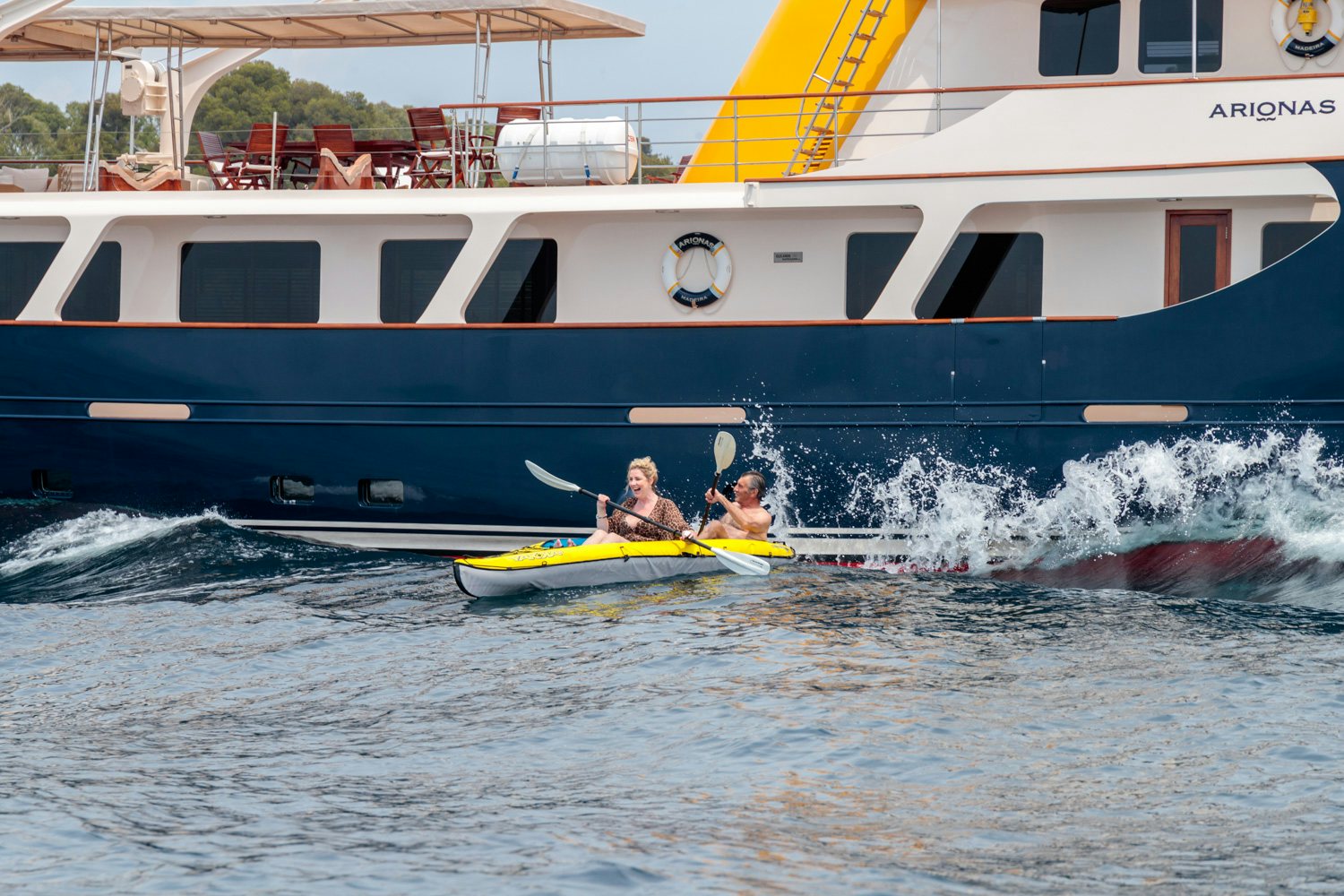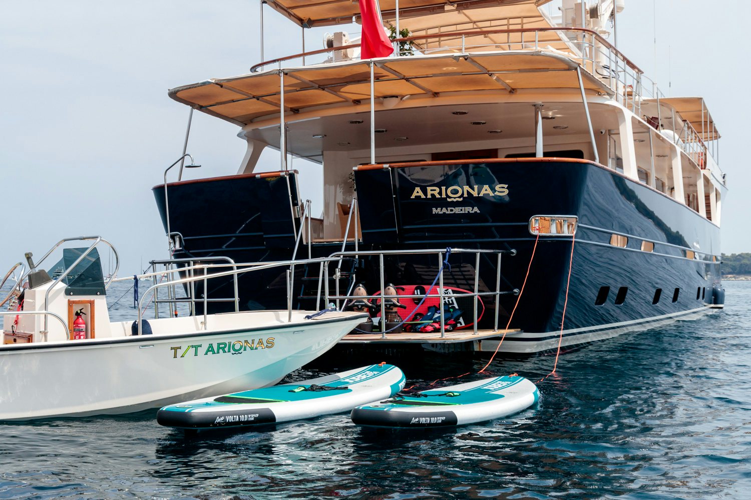 The large outdoor living spaces aboard ARIONAS will have guests enjoying the best of the alfresco lifestyle. Guests will enjoy taking in the sea views from the yacht’s sundeck, which offers a lounge area, sun loungers, alfresco dining and optional shade. Motor yacht ARIONAS also offers guests alfresco dining on the main deck aft. For those looking for a holiday filled with fun, ARIONAS delivers with an impressive array of water toys that guests can enjoy right off the swim platform. From exploring below the waterline to discovering quiet bays, guests will be able to spend hours making memories and having fun.