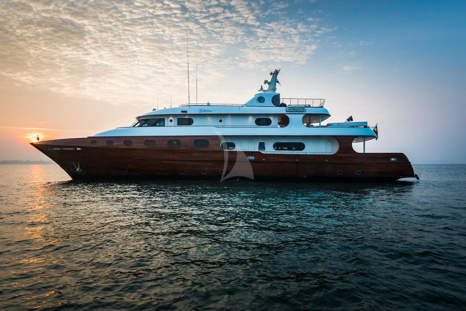 East meets West in seamless luxury on board the beautiful 149'3" (45.5m) ASHENA. Designed and expertly constructed in 2006 by Wadia Boat Builder, ASHENA’s exotic Burma teak wood exterior matches her equally exotic cruising grounds of the Maldives and India. Classically decorated and with flexible accommodations, ATHENA is the perfect choice for an elegant family charter vacation without comprising on true home-from-home comforts.