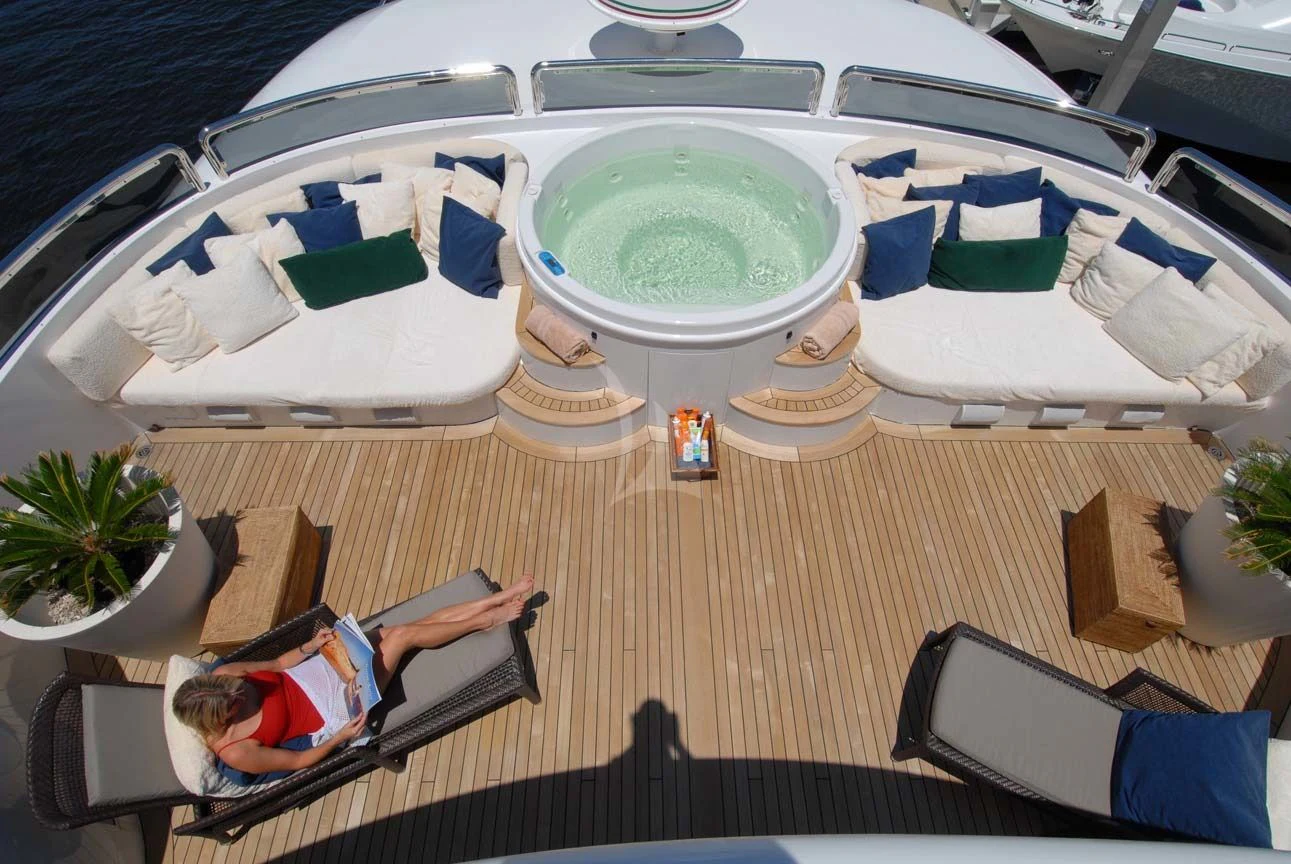AZTECA II is well suited for guests who enjoy outdoor living and active cruises. The huge sundeck includes ample sunbeds and loungers for soaking up the sun, as well as shaded areas to retire to in the midday heat and a six-person jacuzzi. For those looking for action closer to the water, AZTECA II boasts an impressive toybox. As an RYA-approved water sports center, the crew is able to issue Personal Watercraft Licenses, enabling guests to make the most of the SeaBobs, Sea-Doos, Standup Jet Skis, paddleboards, kayaks, wakeboards, wake skis, and kitesurfing equipment. The extensive onboard diving and snorkeling equipment allow experienced and novice divers alike to explore mysterious underwater worlds.