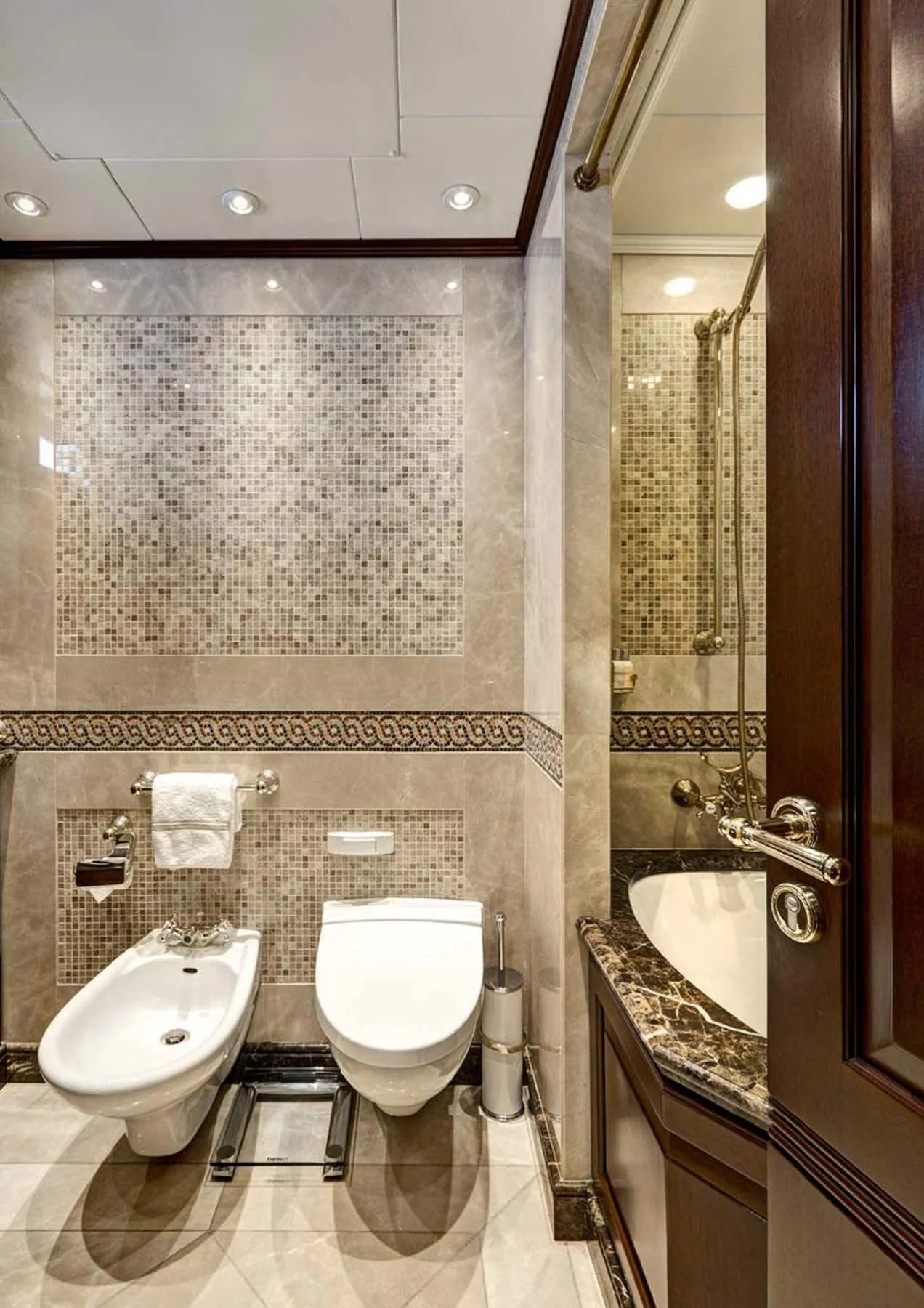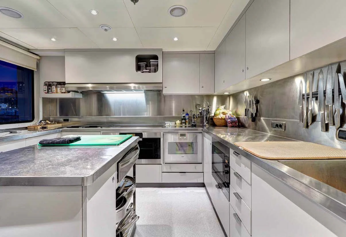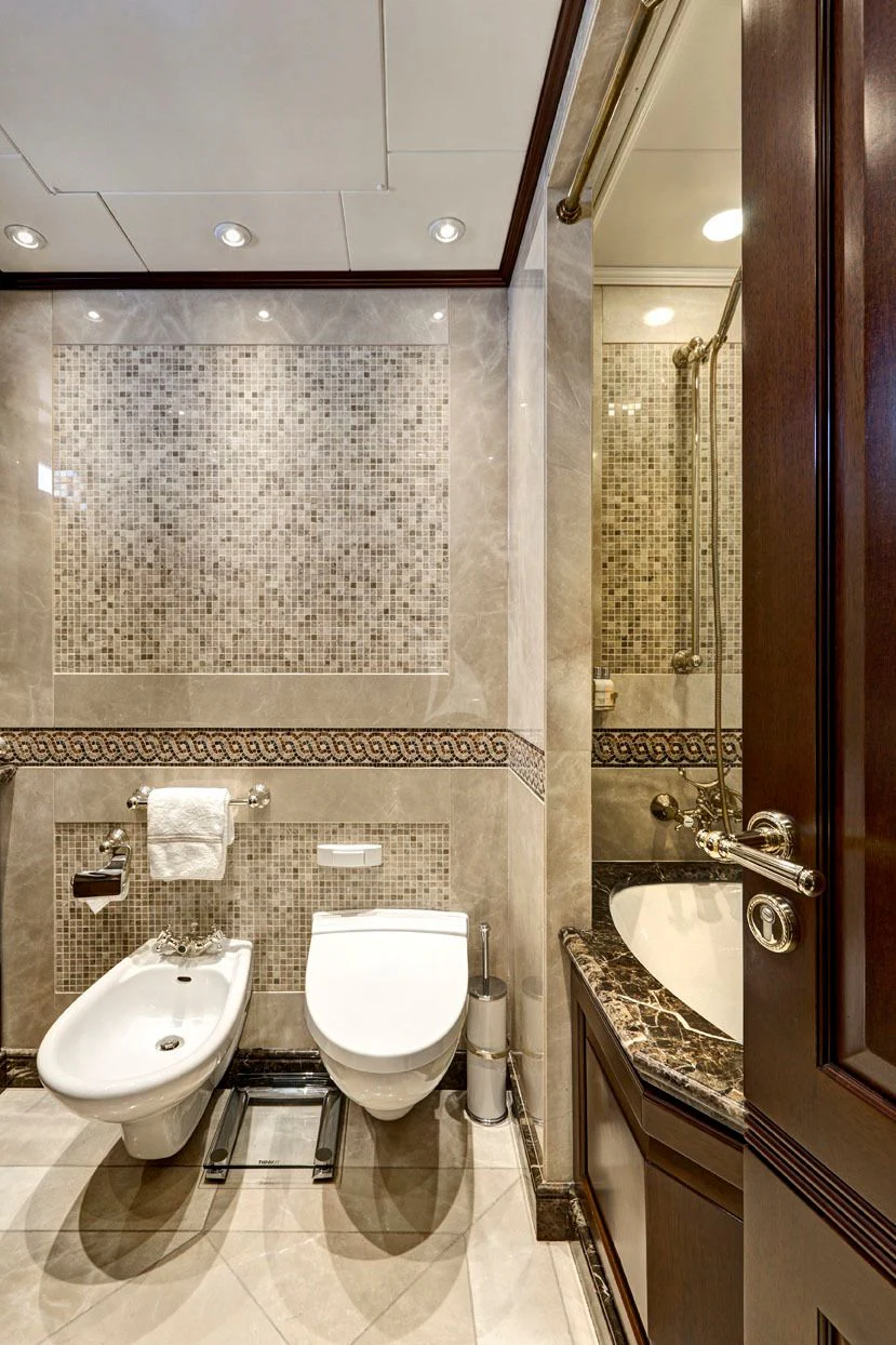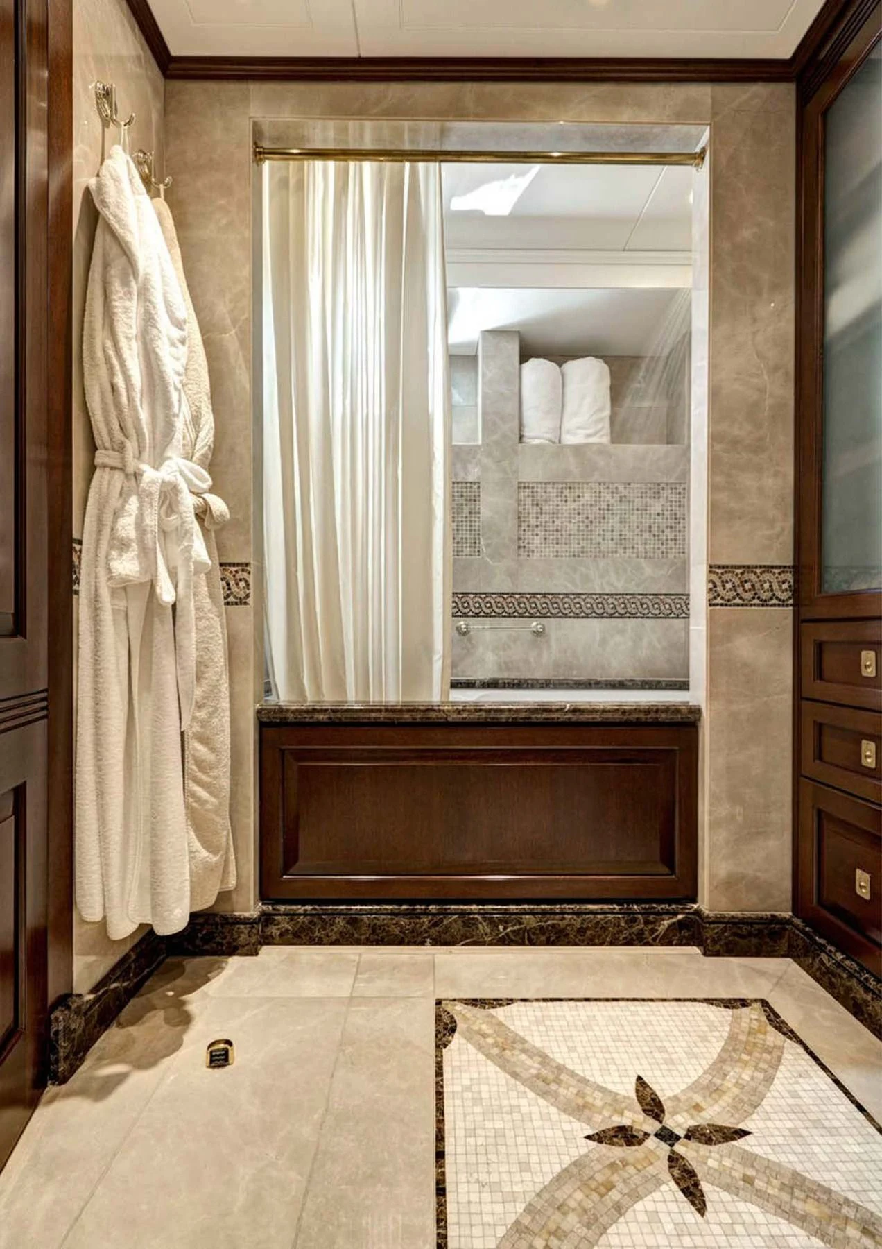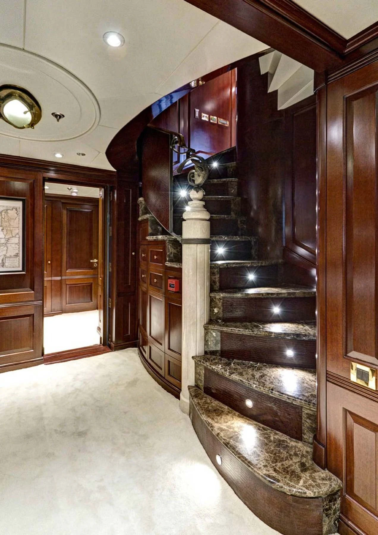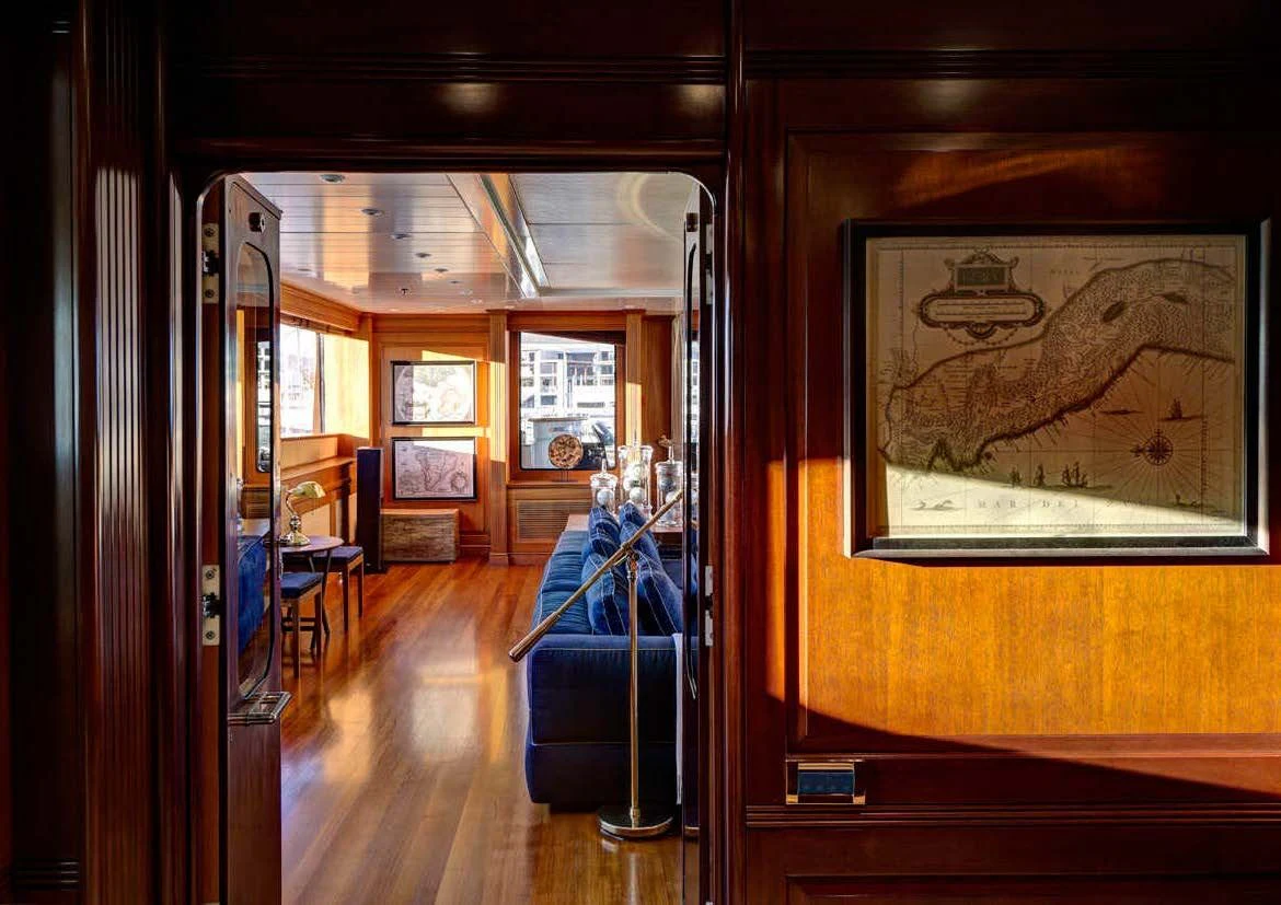 The slightly contemporary lines of AZTECA II’s exterior styling are mirrored by her beautiful interior design, which is classically stylish with subtle incorporation of modern aspects. Plush cream carpets are paired with dark woods and highlighted with olive and metallic furnishings to create an atmosphere of timeless decadence. Striking art pieces and hints of her Turkish origins add a touch of exotic modernity to her AZTECA II’s unique style.