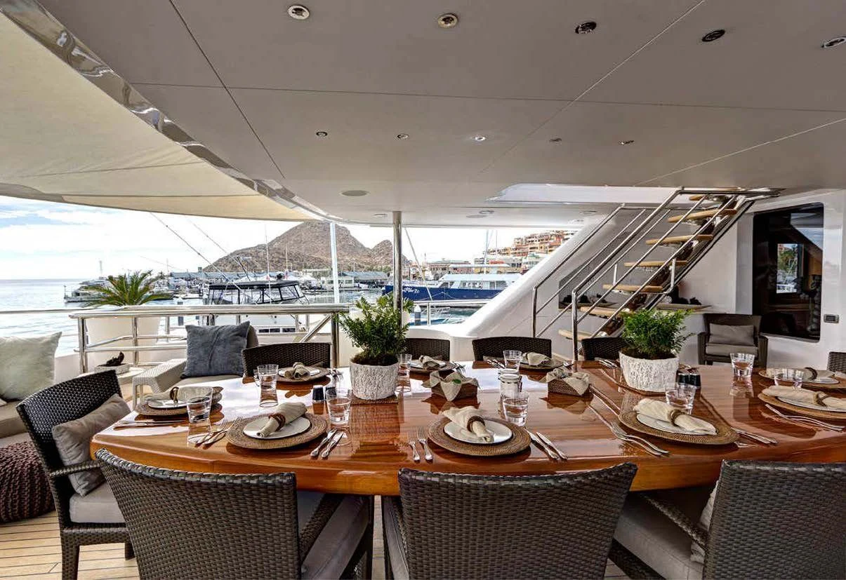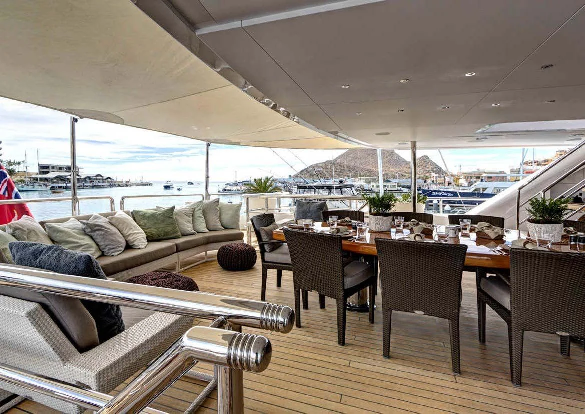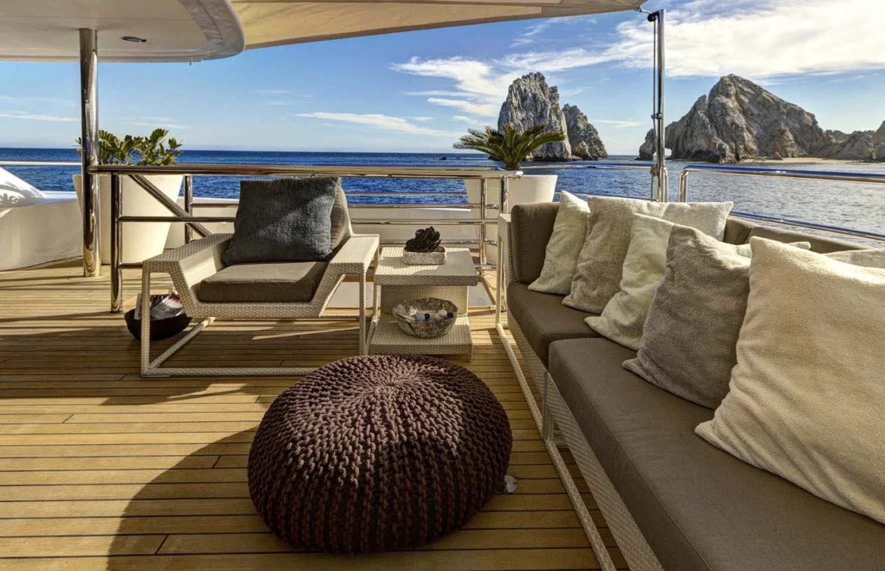 Refitted in 2019, this luxury superyacht is in pristine condition. High-quality furnishings and well-planned interiors create a welcoming atmosphere, while stabilizers underway and at anchor enhance guests’ comfort throughout their luxury charter cruise on board AZTECA II. Well-planned interior areas offer plenty of options for guests to relax and socialize. The lavish sofas of the main deck salon and upper deck lounge are perfect for relaxing with drinks in the early evening or for after-dinner conversations.