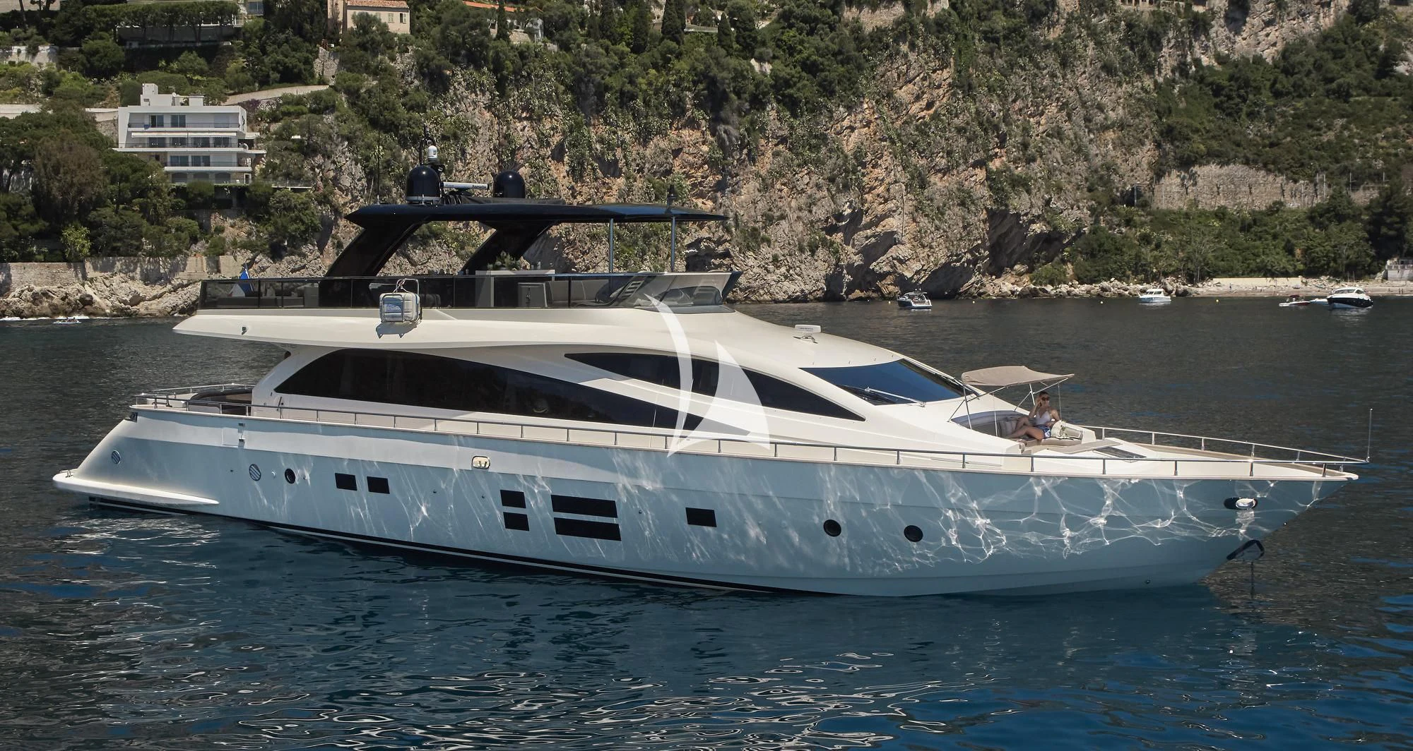 The Italian Amer Permare shipyard launched the semi-custom motor yacht BACCARAT in 2022. The beautiful model Amer F100 luxury yacht measures 97’ (29.6m), showcasing excellent seakeeping abilities while cutting through waves. The charter yacht boasts an impressive max cruising speed of 30 knots, contributing to her seaworthiness and high-performance build. Guests will appreciate BACCARAT’s vast array of amenities, from her endless exterior lounging areas to the ultra-luxurious interior furnishings and finishes.