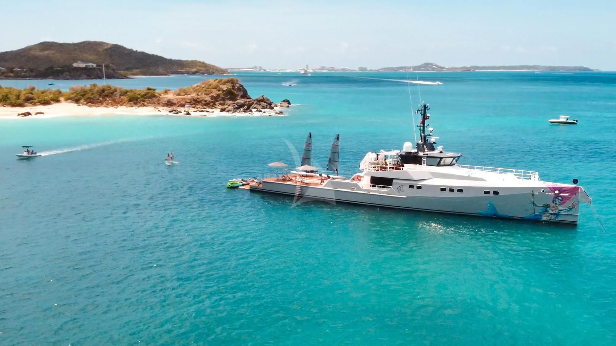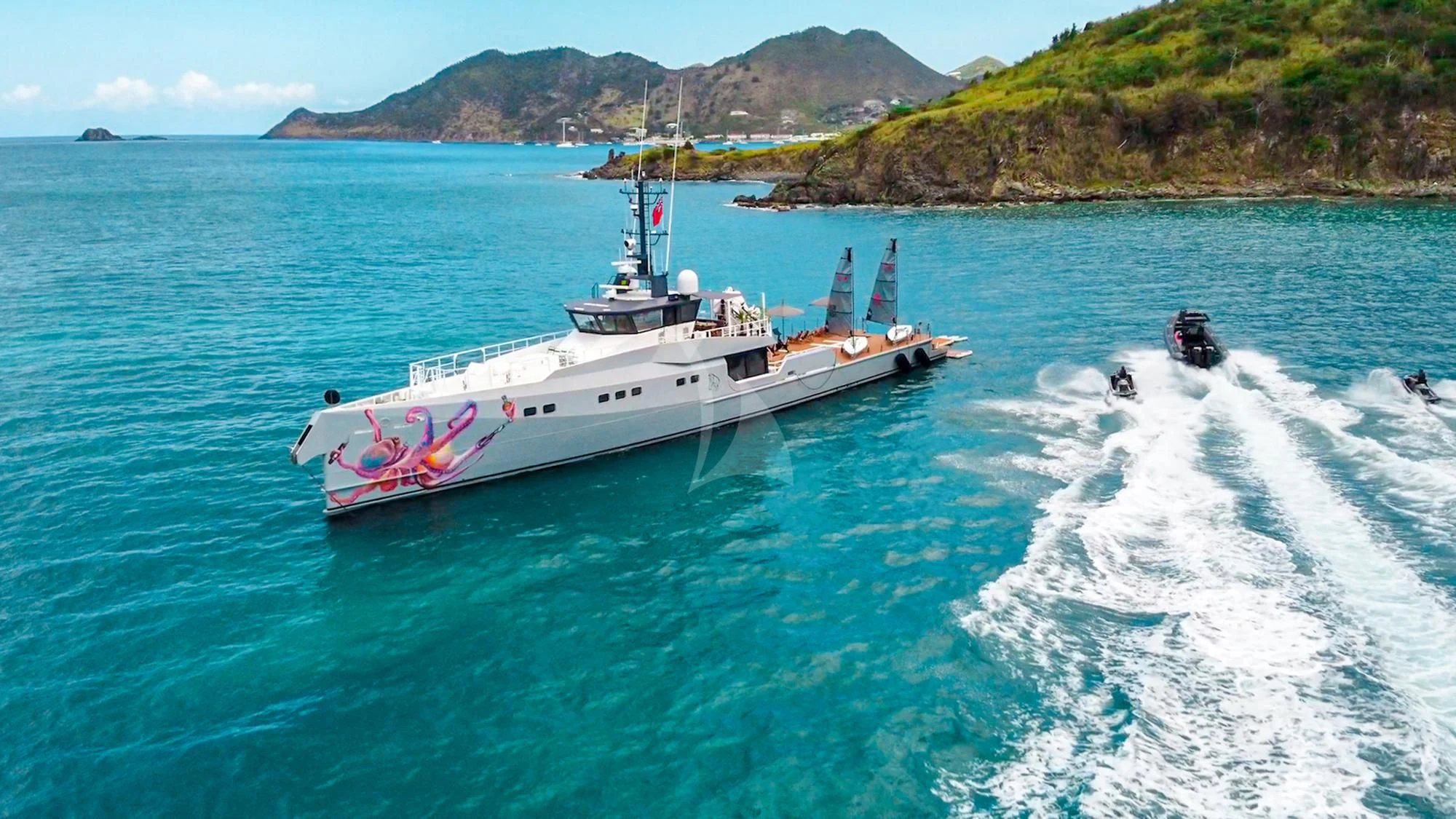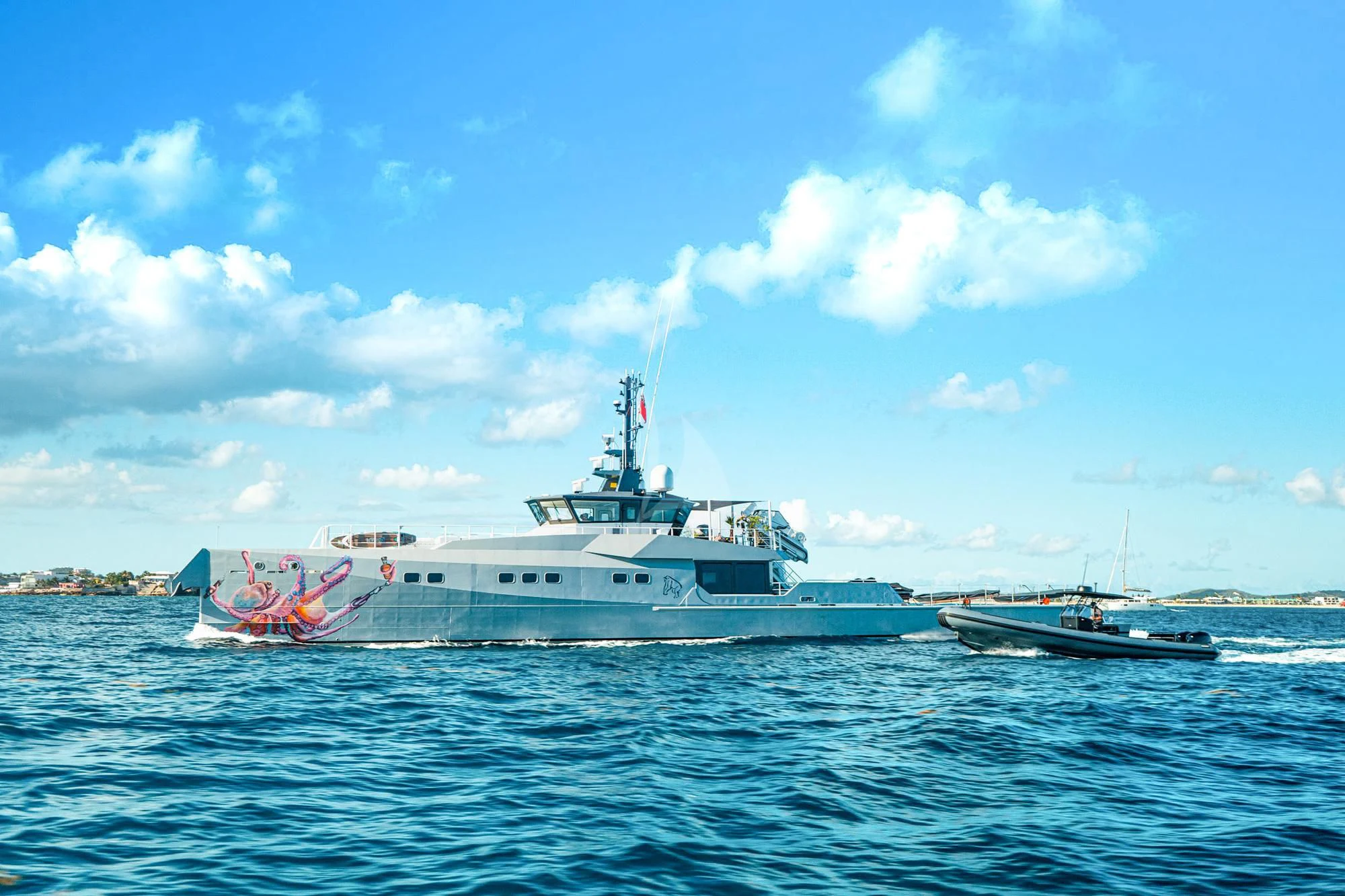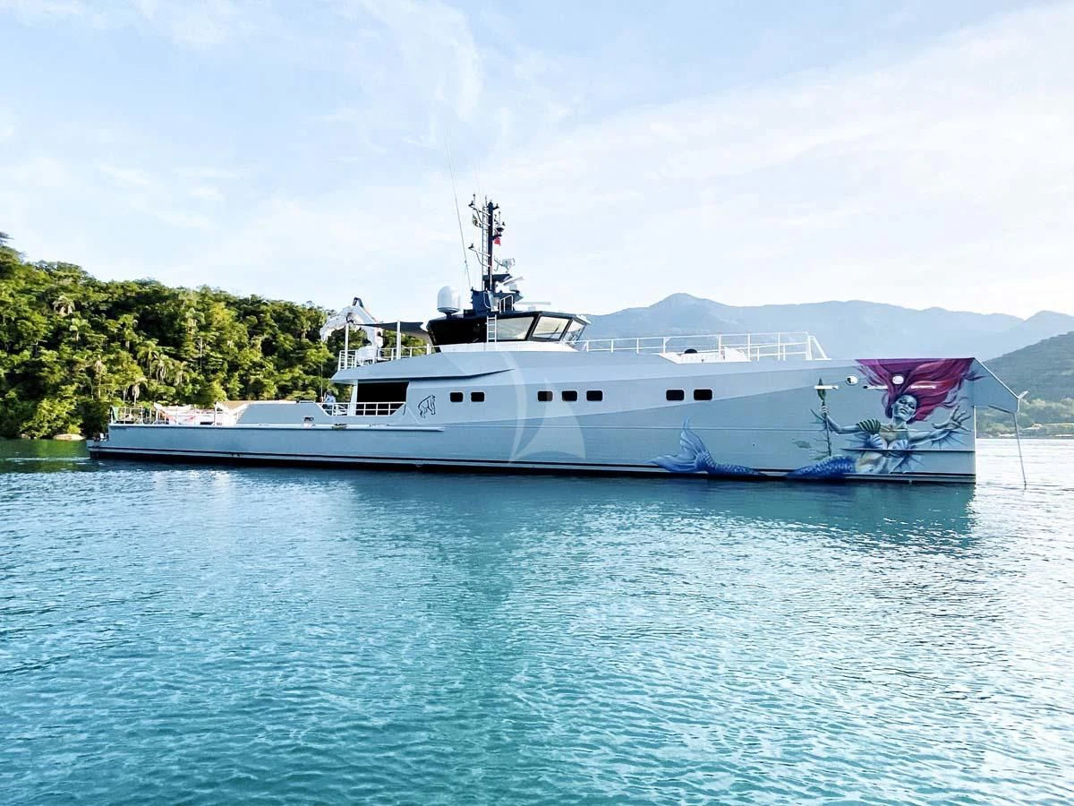 With her globetrotting range of 5,000 nautical miles and unique versatility, the 149'8" (45.6m) BAD COMPANY SUPPORT opens up a world of opportunities for adventurous charter vacations. Instantly recognizable thanks to the jaw-dropping original artwork on her exteriors by German artist Ann-Kathrin Otto and rugged explorer lines, BAD COMPANY SUPPORT was designed and built by Dutch shipyard Damen Yachting in 2019 and meticulously maintained ever since including a 2022 refit. Previously called Pink Shadow and Joy Rider, BAD COMPANY SUPPORT has been seen in the hottest anchorages in Monaco and cruising the tropical waters of the Caribbean. Suited to any environment and supremely self-sufficient, BAD COMPANY SUPPORT promises an unforgettable charter vacation.