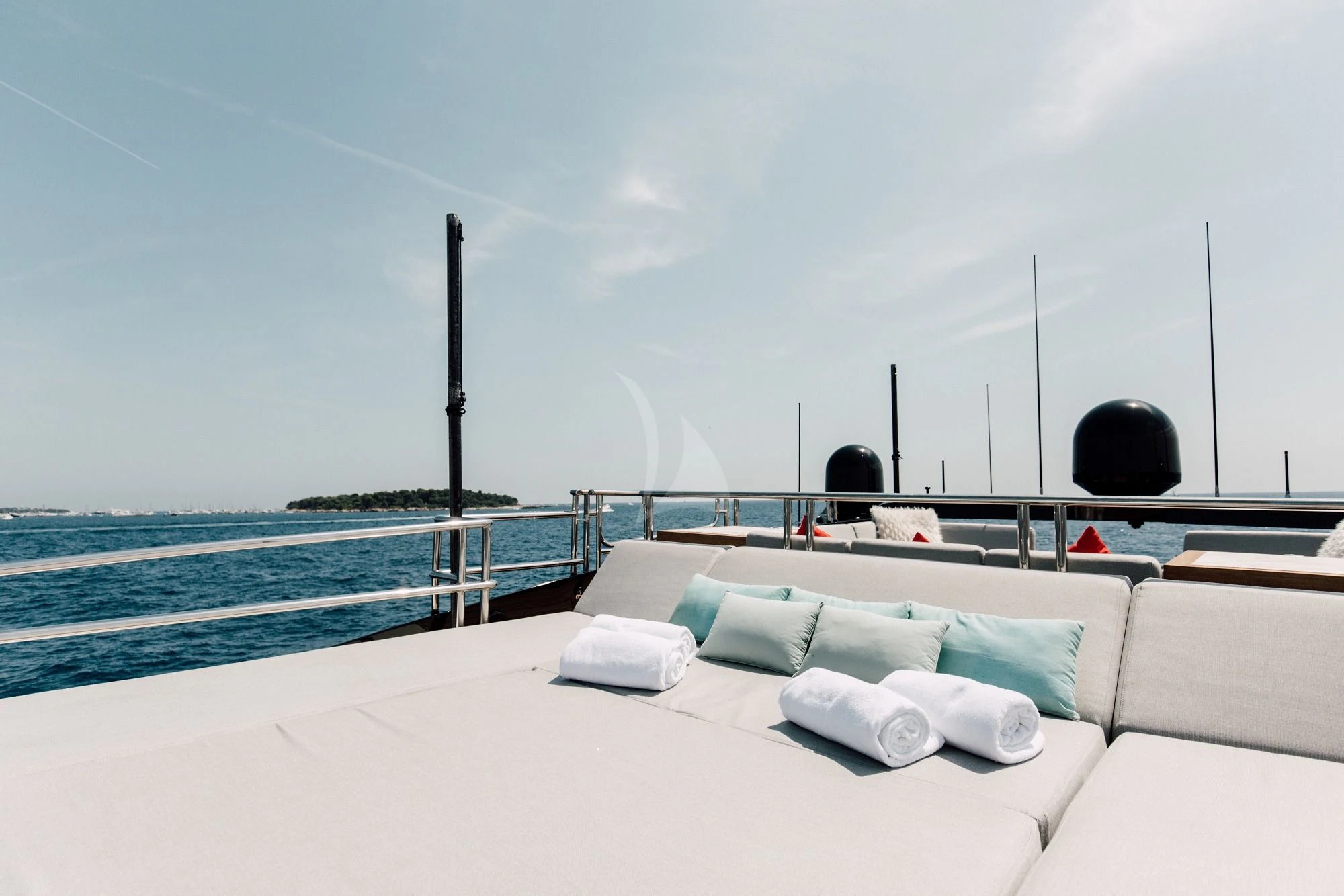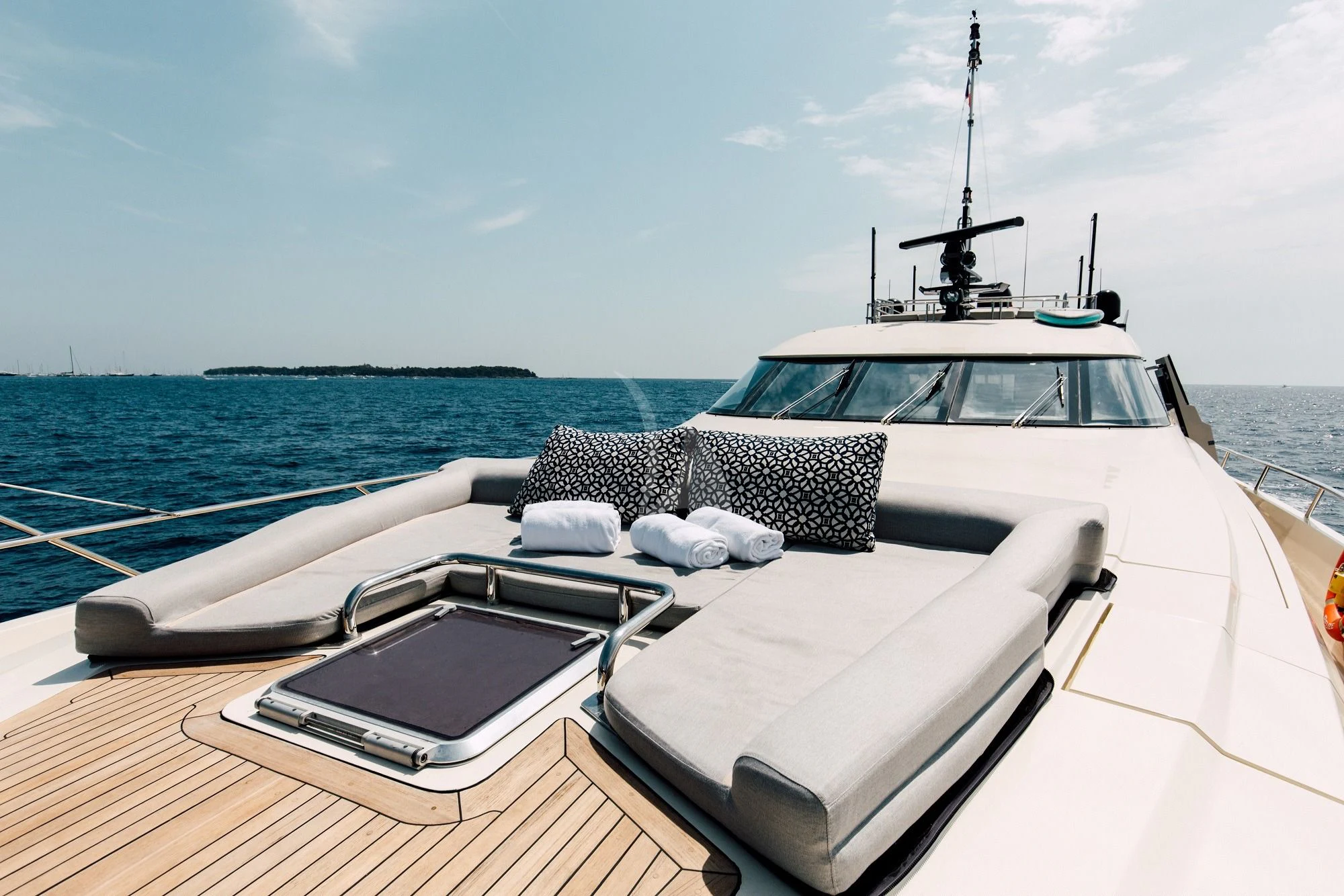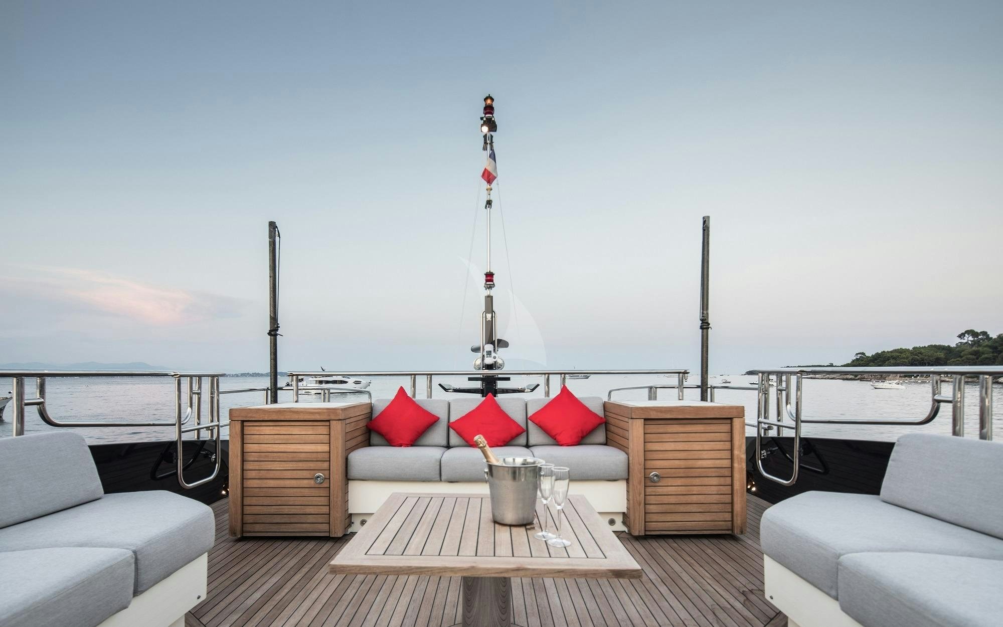 The outdoor living areas on luxury charter yacht BAGHEERA are the ideal place to spend the day while enjoying the incredible scenery. The yacht's main deck has brilliant spaces for lounging, alfresco dining, sunbathing overlooking the massive swimming platform, or soaking in the spectacular infinity-edge Jacuzzi. BAGHEERA is the only Palmer Johnson 120 to include this luxurious feature. There is also an expansive sunpad on the foredeck with 360-degree views, while the sundeck is an equally stylish spot for topping up your tan or enjoying sundowner cocktails.