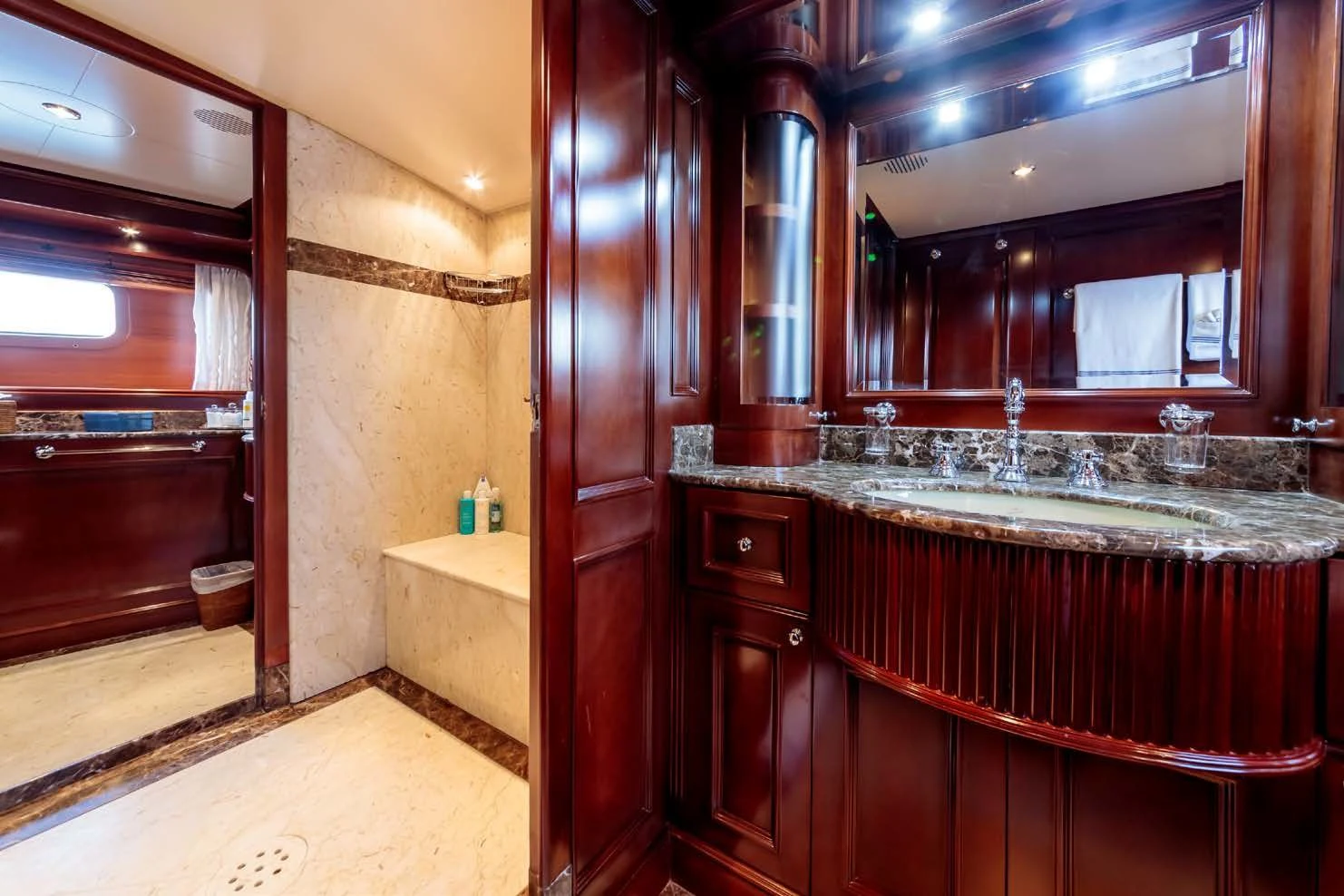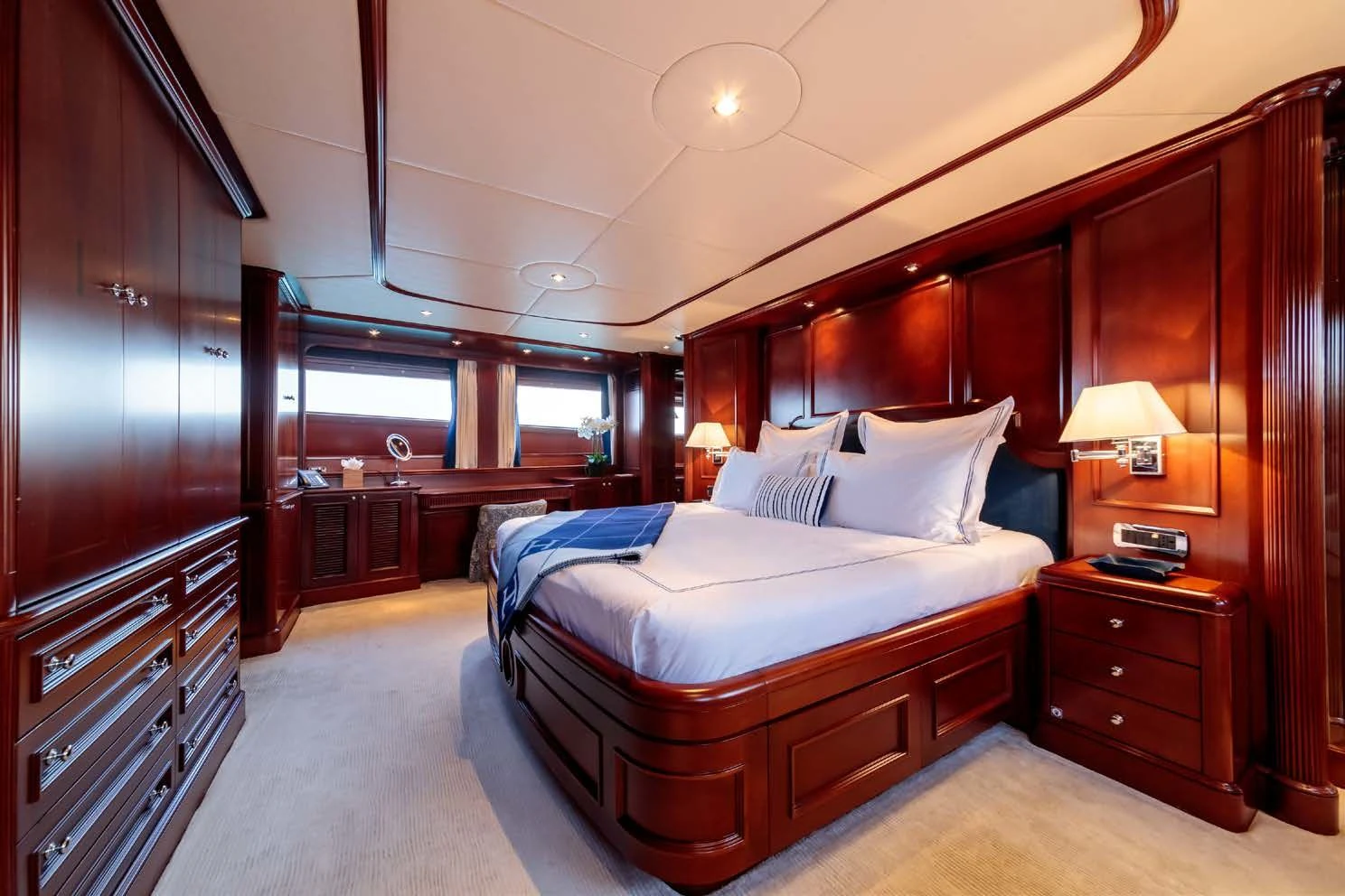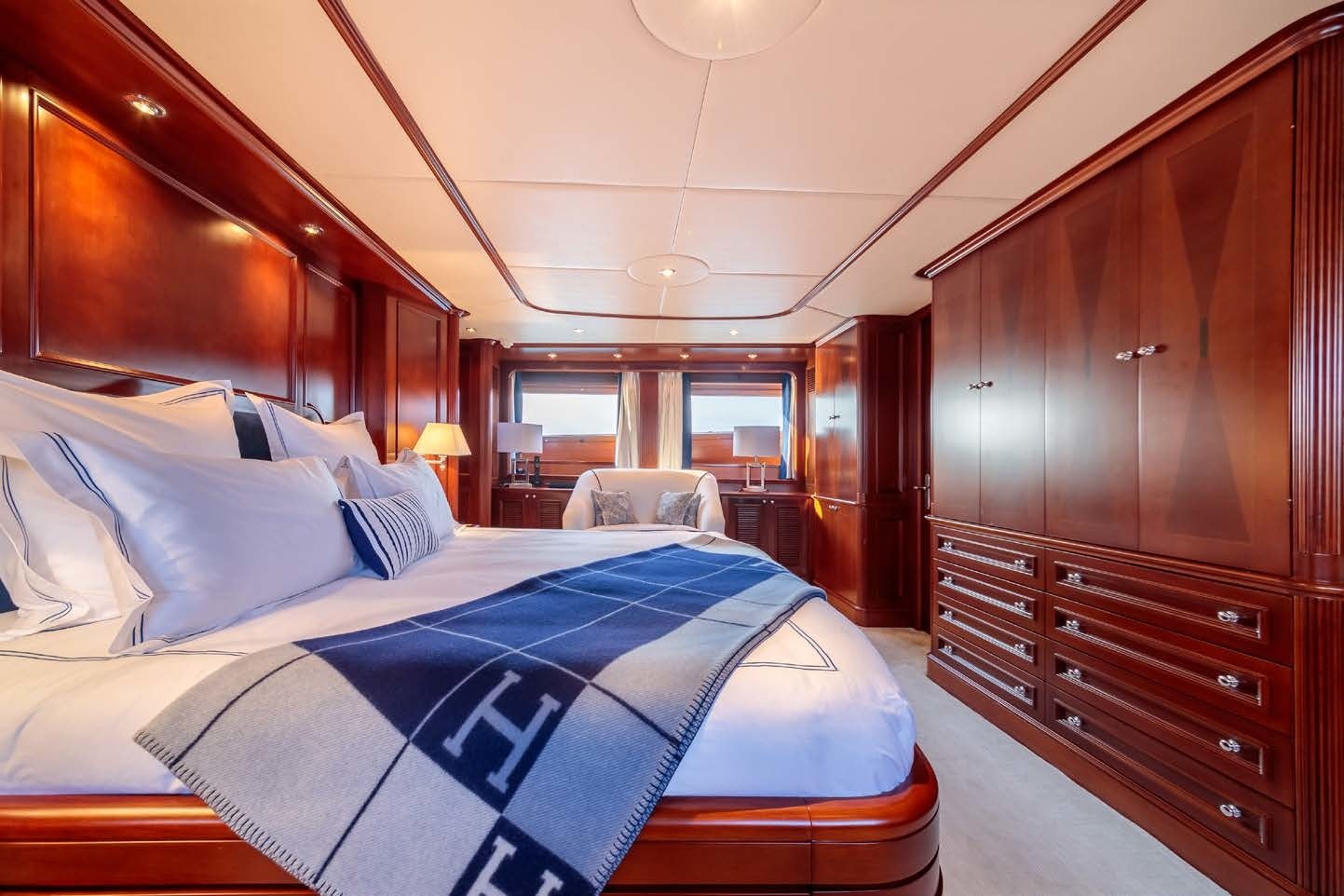Providing levels of space, comfort and facilities normally found on much larger vessels, she accommodates up to 10 guests in a large main-deck master suite and a further four double cabins, all located below deck. These superb accommodations are all finely decorated courtesy of the yacht’s owner.
