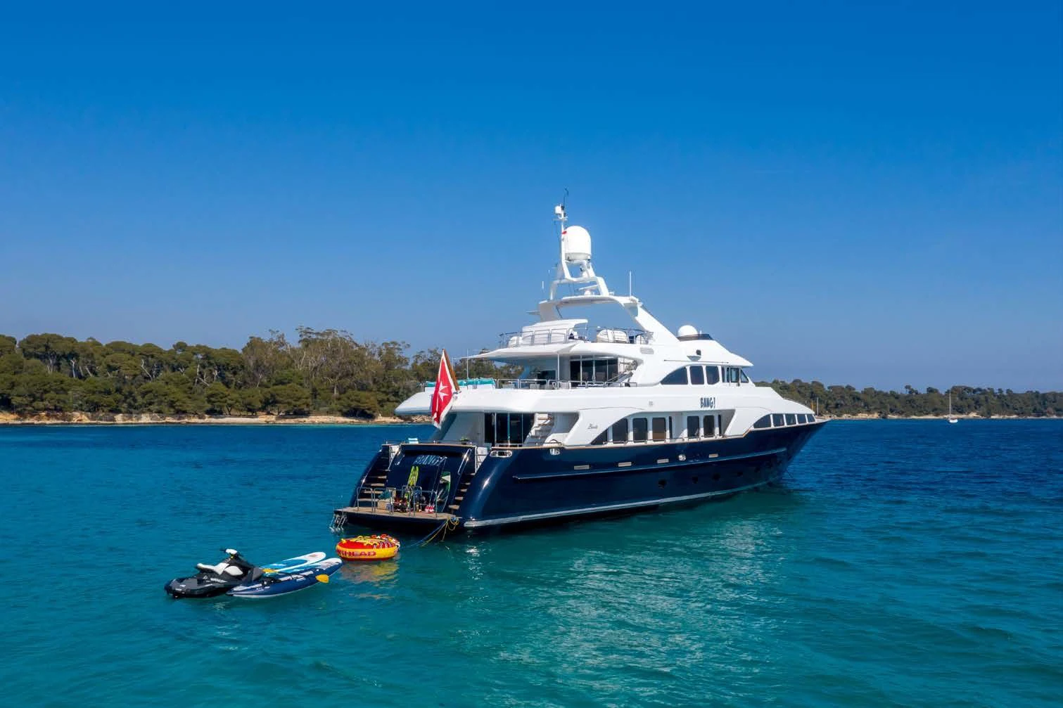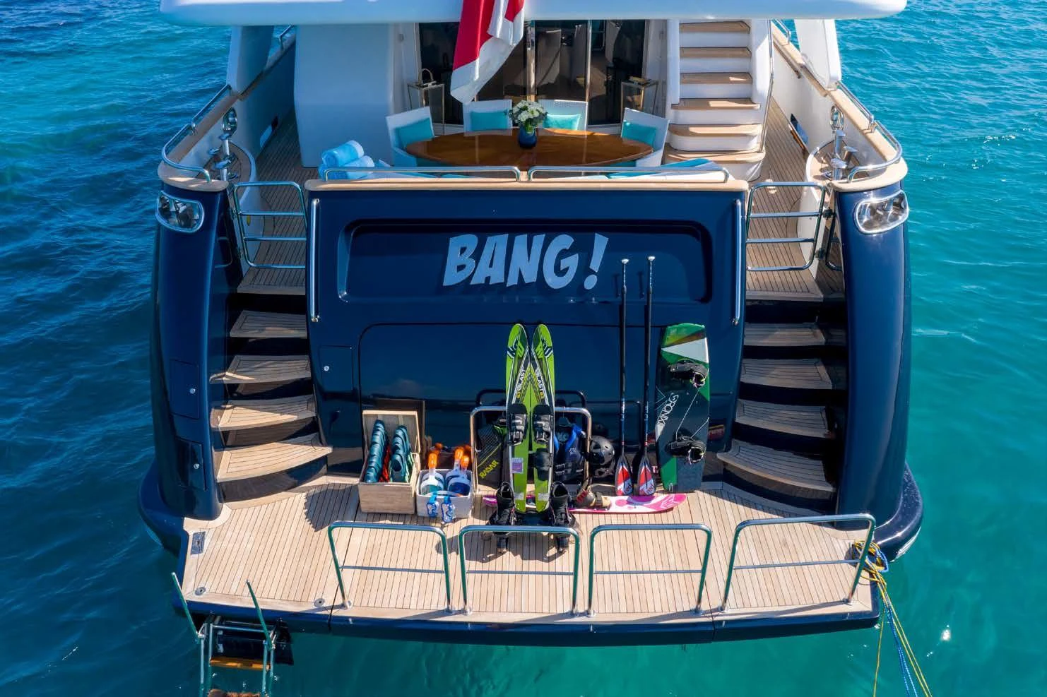 With state-of-the-art entertainment facilities throughout both her interior and exterior areas, BANG! is the ideal charter yacht for active guests and those looking to simply relax. Her crew of six are on hand to guide active guests, while those looking to sit back can simply relax on board. A superyacht charter on board BANG! ensures the highest levels of comfort and luxury combined with fun and excitement.